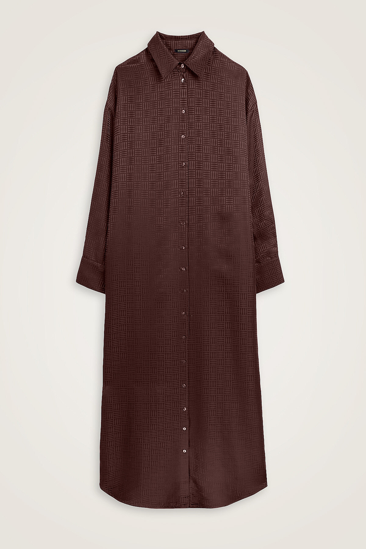 İman Kare Kahverengi Jakarlı İpek Gömlek Elbise