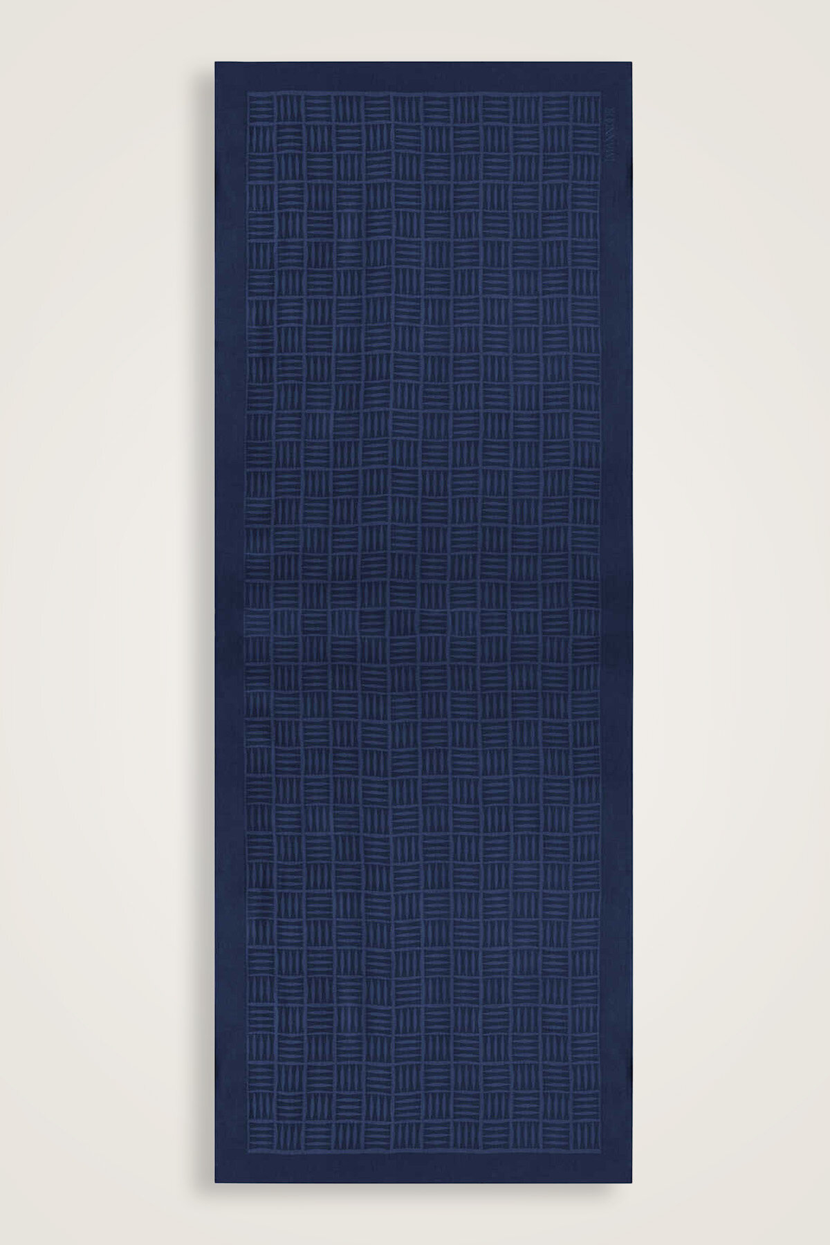 Benzersiz Tasarım: Lacivert zemin üzerine düzenlenmiş, yanyana dizilmiş dört 'I' harfinden oluşan kare şekilleri ile modern ve zarif bir görünüm sunar. Bu desen, her türlü kıyafetle kolayca uyum sağlar ve sofistike bir hava katar.