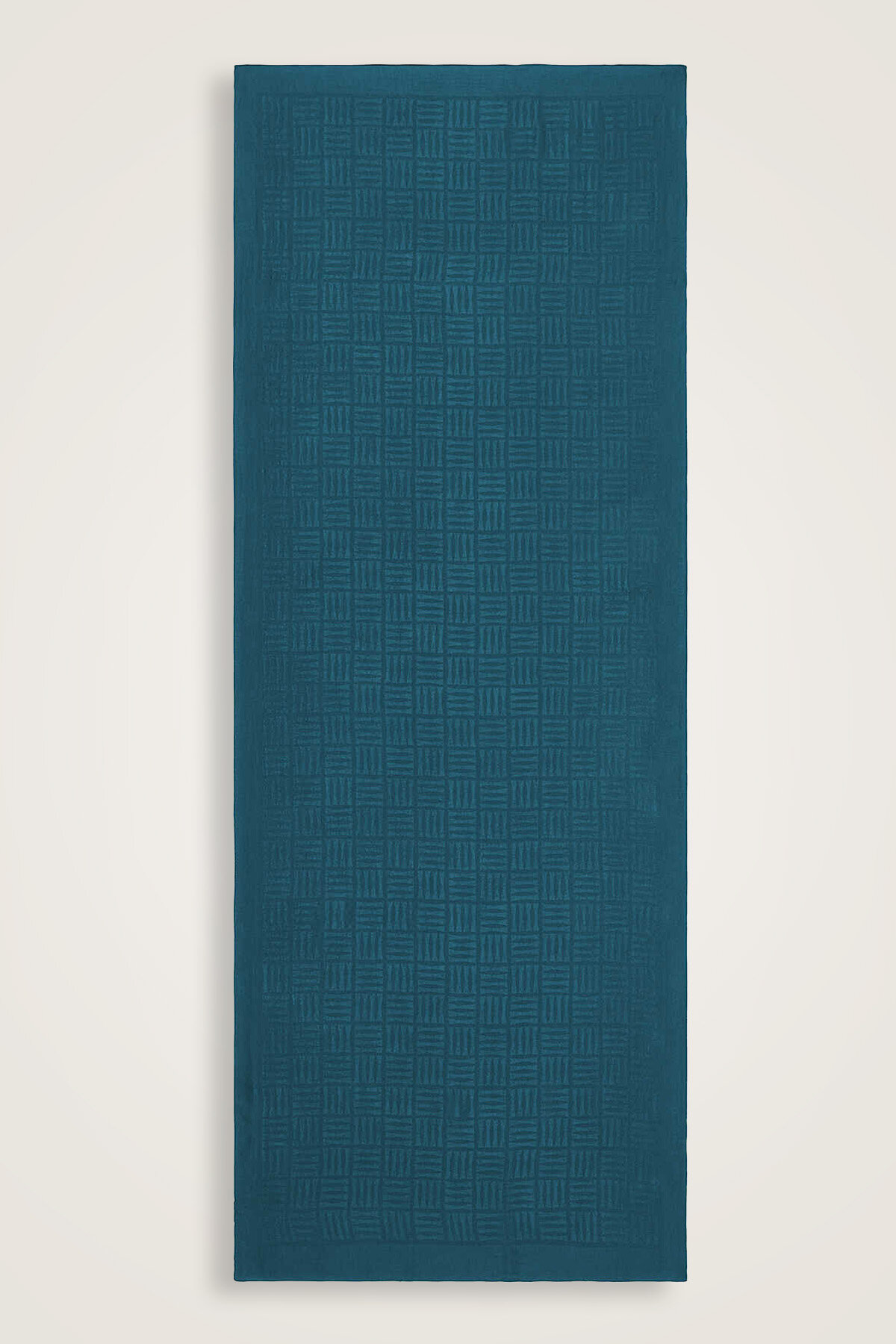 Üzerinde yer alan dikkat çekici ve yaratıcı desen, yan yana dizilmiş dört 'I' harfinin kare şekiller oluşturduğu bir kompozisyon sunar. Bu eşsiz desen, petrol mavi rengin zengin tonlarıyla birleşerek göz alıcı bir görünüm sağlar. İster günlük kullanım için ister özel günlerde aksesuar olarak tercih edin, İman Kare Şal her ortamda tarzınızı yansıtmanıza yardımcı olacak.