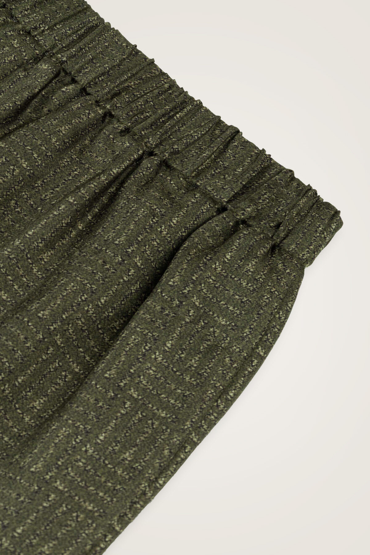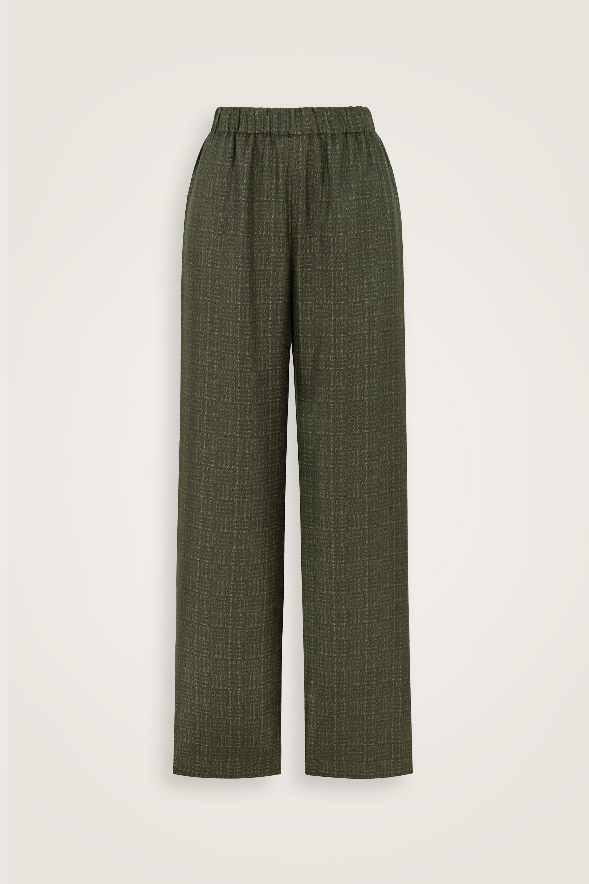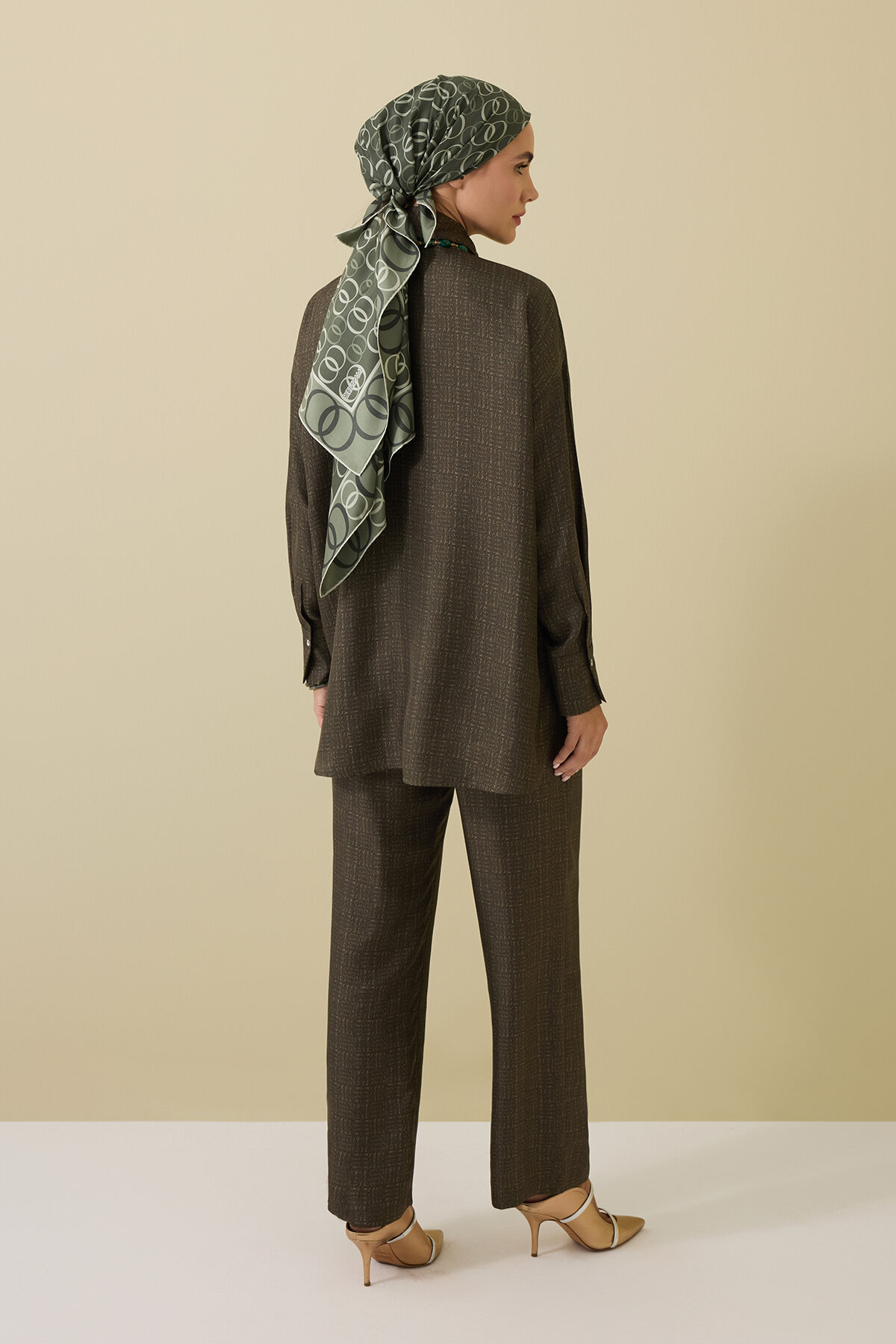 İman Kare Dokulu İpek Pantolon ile doğallığın zarif çizgilerini stilinize taşıyın.