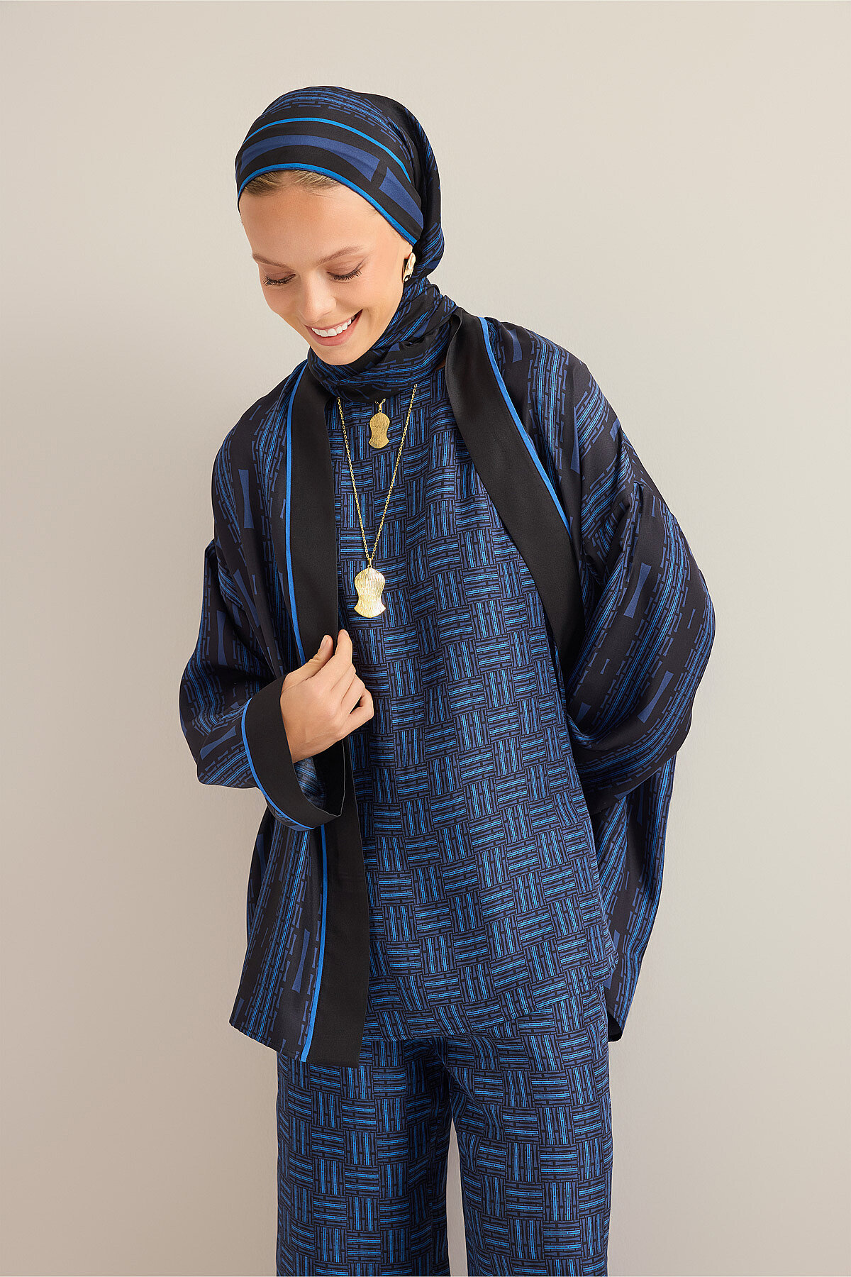 İmannoor’un anlam yüklü ve zarif tasarım anlayışını yansıtan %100 ipek İman Yolu Tivil İpek Kolsuz Bluz, tivil ipeğin tok ama akışkan dokusu sayesinde vücutta doğal ve dengeli bir duruş sunar; yol ve iz kavramından ilham alan özel deseniyle stile derinlik ve karakter kazandırırken, kolsuz formu ferah ve modern bir kullanım sağlar, ipeğin doğal parlaklığı ve nefes alabilen hafif yapısı gün boyu konfor sunar ve hem klasik hem çağdaş kombinlerde zamansız bir parça olarak gardırobunuzda öne çıkar.