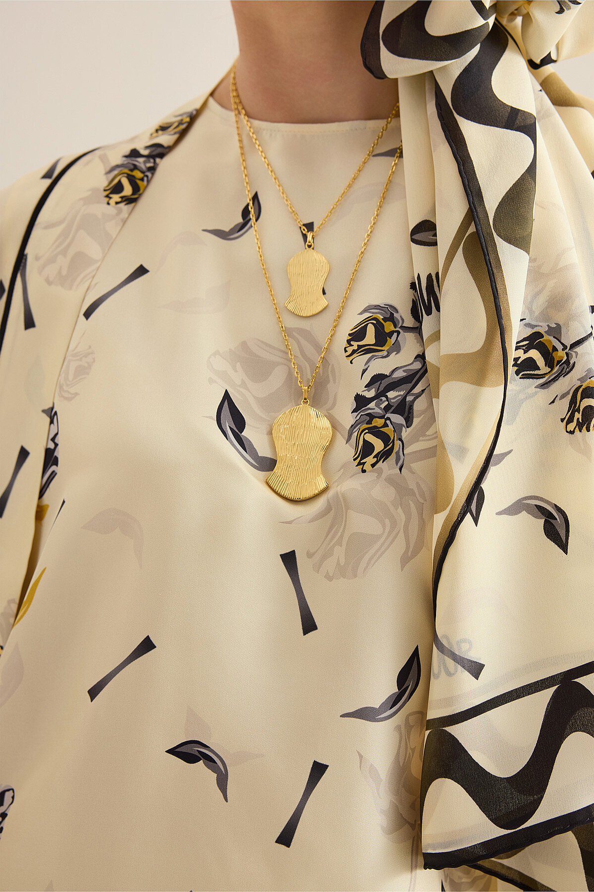 İmannoor’un zarif ve anlam yüklü tasarım anlayışını yansıtan %100 ipek İman’ın Gülü Tivil İpek Kolsuz Bluz, tivil ipeğin tok ama akışkan dokusu sayesinde vücutta doğal ve şık bir duruş sunar; gül desenli özel tasarımıyla stile feminen ve sofistike bir karakter kazandırırken, kolsuz formu ferah ve modern bir kullanım sağlar, ipeğin doğal parlaklığı ve nefes alabilen hafif yapısı gün boyu konfor sunar ve hem klasik hem çağdaş kombinlerde zamansız bir parça olarak gardırobunuzda öne çıkar.