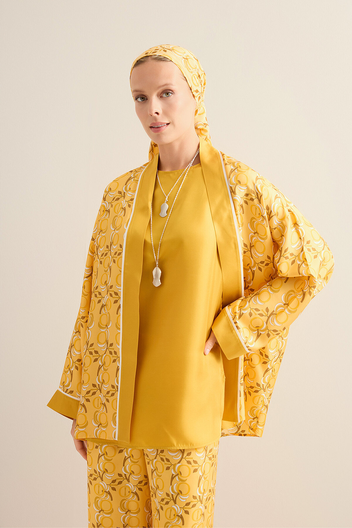 İmannoor Çiçeği Sarı Tivil İpek Kolsuz Bluz
