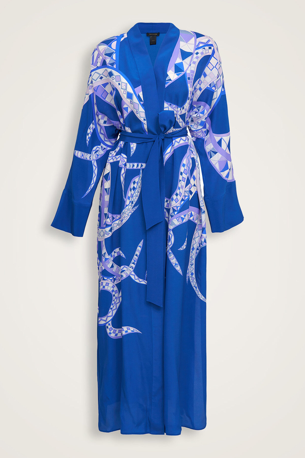 Ahtapot deseninin zarif yansıması, doğanın gücünü ve zarafetini simgeliyor, kimono tasarımına özgün ve sofistike bir hava katıyor. Akıcı kesimi ve ipek kumaşın doğal parlaklığı ile her hareketinize zarif bir dokunuş ekler. Hem günlük stilinizde hem de özel davetlerde rahatça kullanabileceğiniz bu kimono, şıklığınızı tamamlayacak.