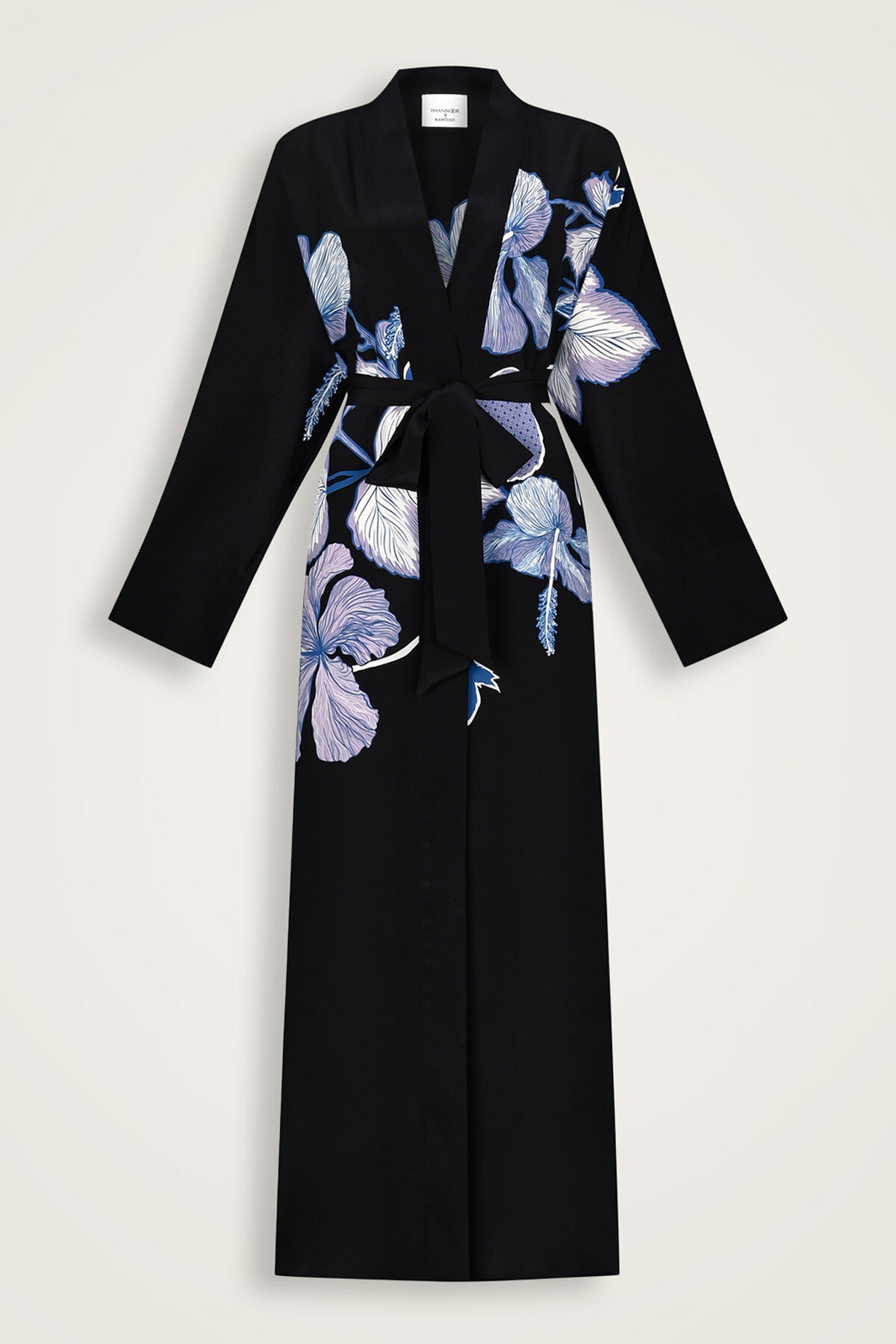 Doğanın zarafeti ve lüksün mükemmel birleşimi: İmannoor x Rawdah Mekke Gülü Krep İpek Kimono. %100 krep ipek kumaşı, şıklığınızı ve rahatlığınızı ön plana çıkarırken, Mekke gülü deseninin sofistike dokunuşu, kimono tasarımına zarif bir estetik katıyor.