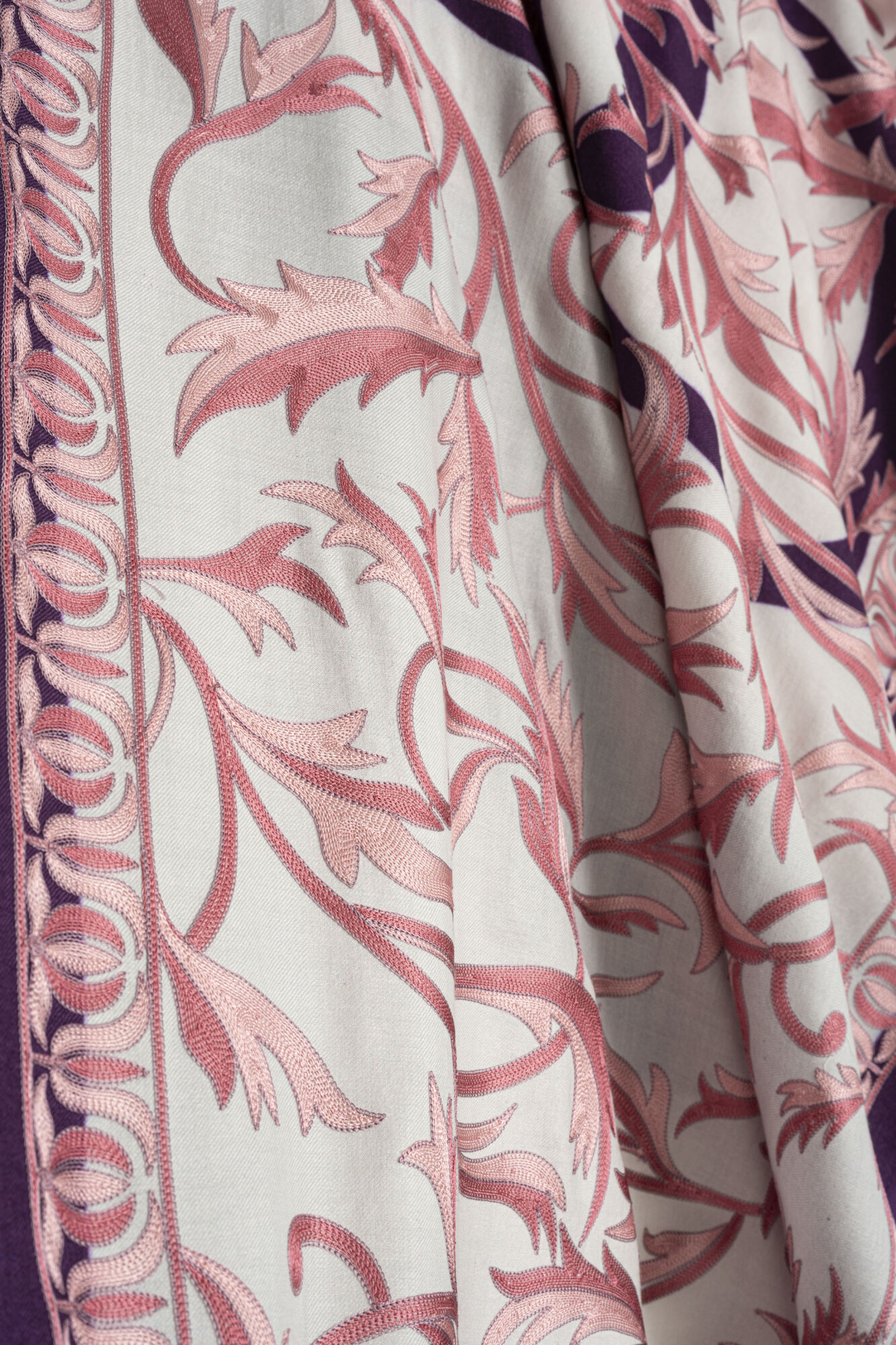 Kanatlı Sarmaşık Mor İşlemeli Yün Şal 77x200