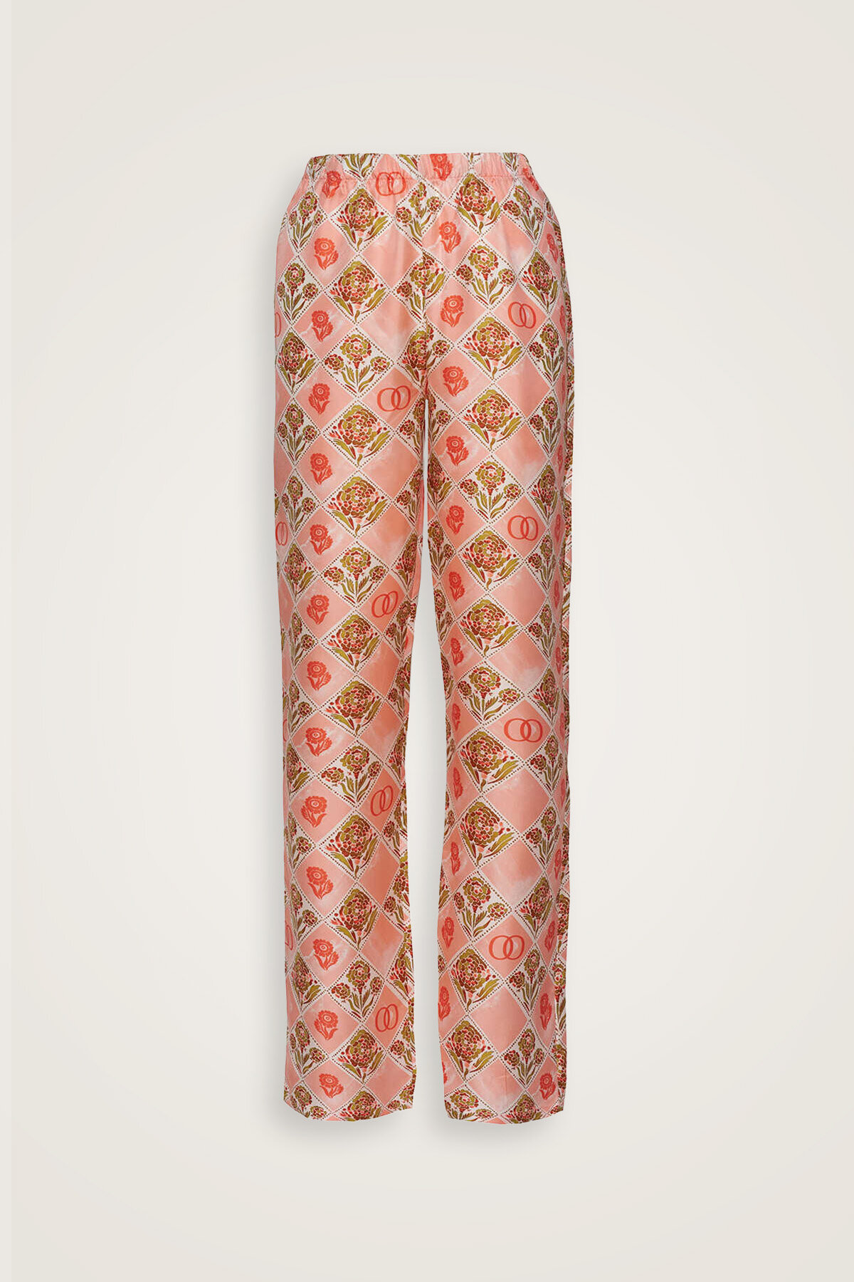 Karanfil ve OO desenleri, bu pantolon pijamayı sıradan bir giysi olmaktan çıkararak sanatsal bir esere dönüştürür. Modern çizgileri ve zarif motifleriyle, bu tasarım zamansız bir şıklığı vurgular. İster evde dinlenirken ister arkadaşlarınızla vakit geçirirken bu özel pijama ile her daim stilinizi yansıtın.