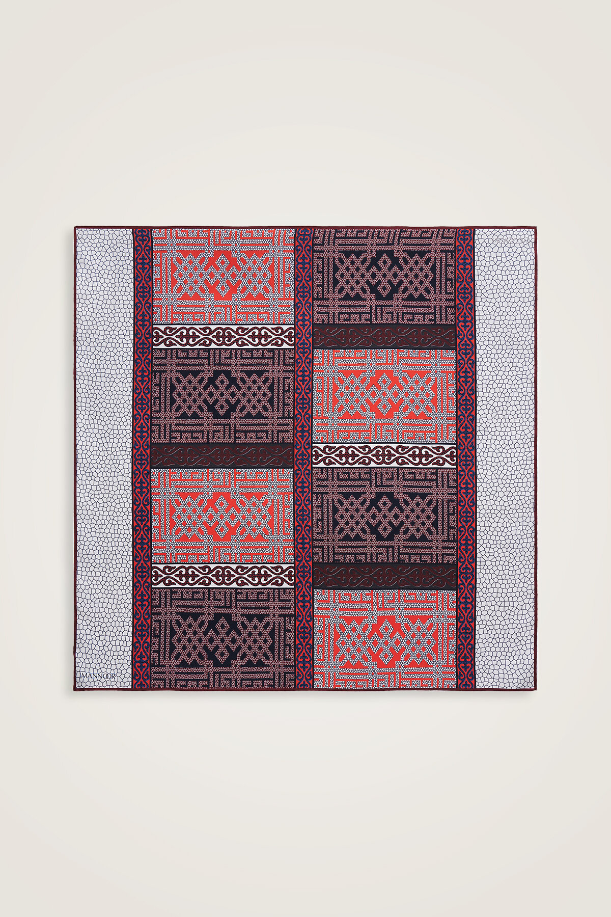 Geleneksel desenlerin ipeğin zarif dokusuyla buluştuğu Kilim Çift Taraflı Tivil İpek Eşarp ile stilinize sanatsal bir dokunuş katın!