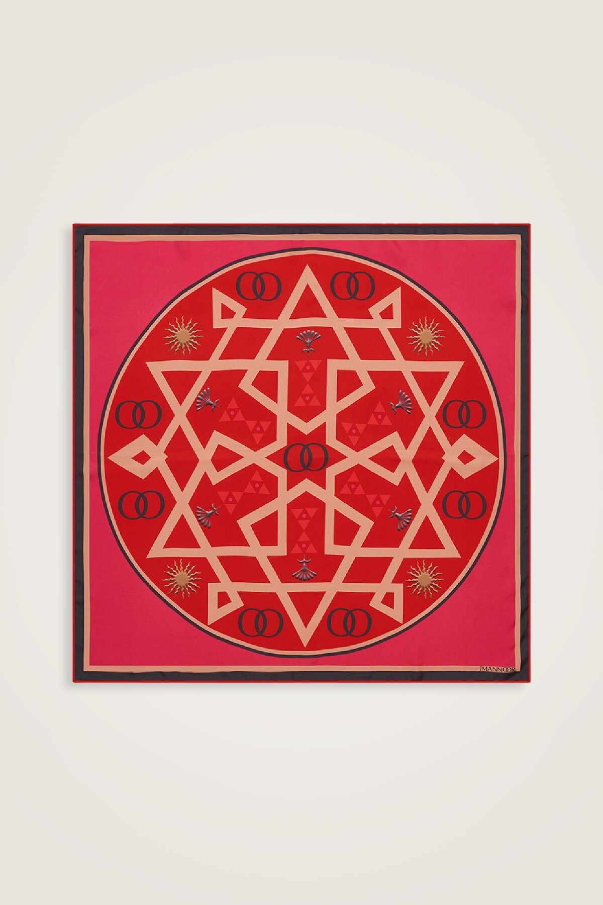 Kırmızının derin ve asil tonu, her kıyafete canlı bir dokunuş eklerken, tivil ipeğin özgün dokusu, bu eşarbı özel günleriniz için mükemmel bir aksesuar haline getirir. İster boynunuza, ister saçınıza, isterseniz de çantanızda bir aksesuar olarak kullanabileceğiniz bu eşarp, çok yönlülüğü ile ön plana çıkar.