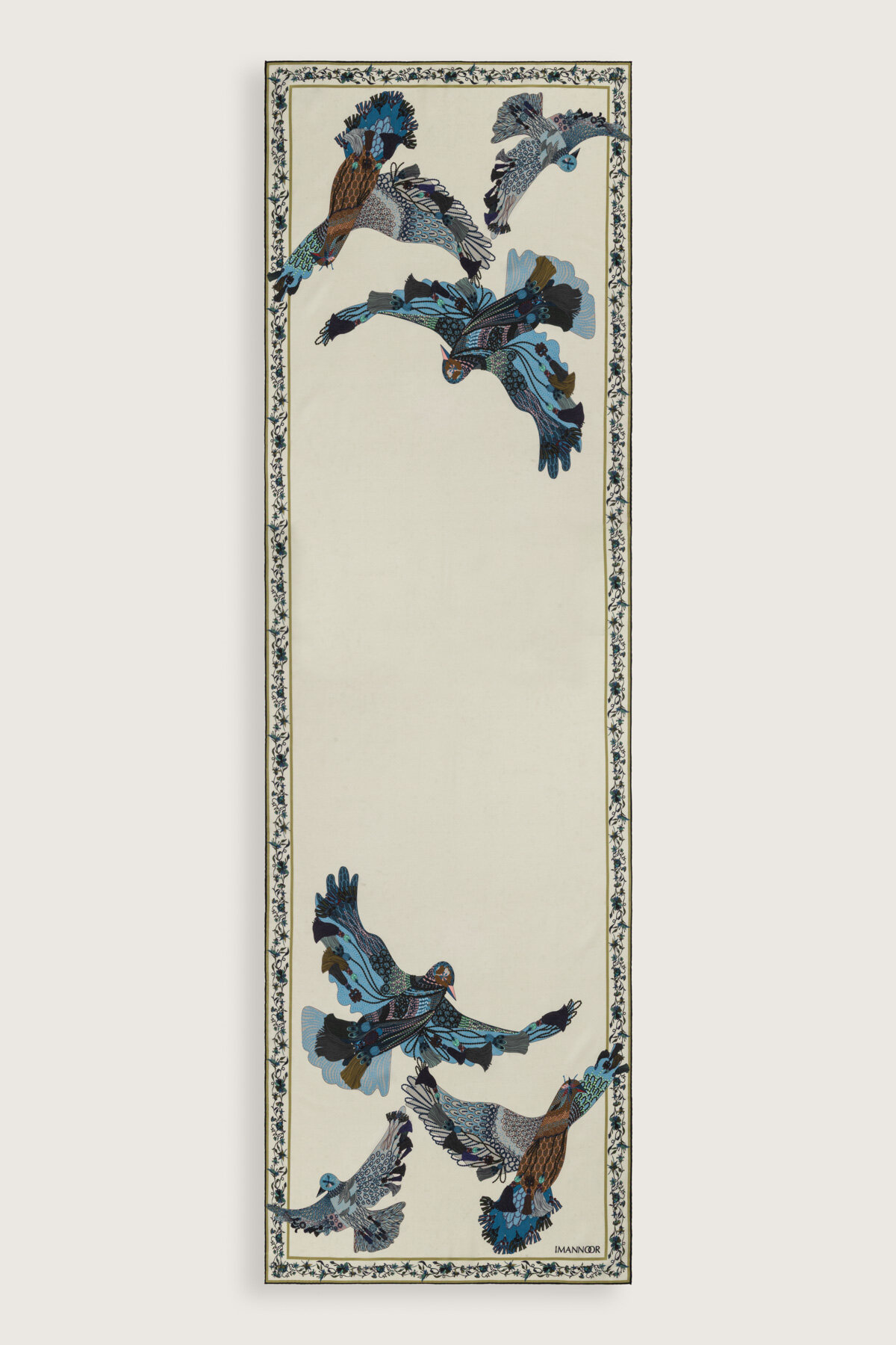 Kuşlu Noor Krep İpek Gömlek Şalı ile stilinize zarif bir özgürlük dokunuşu ekleyin.