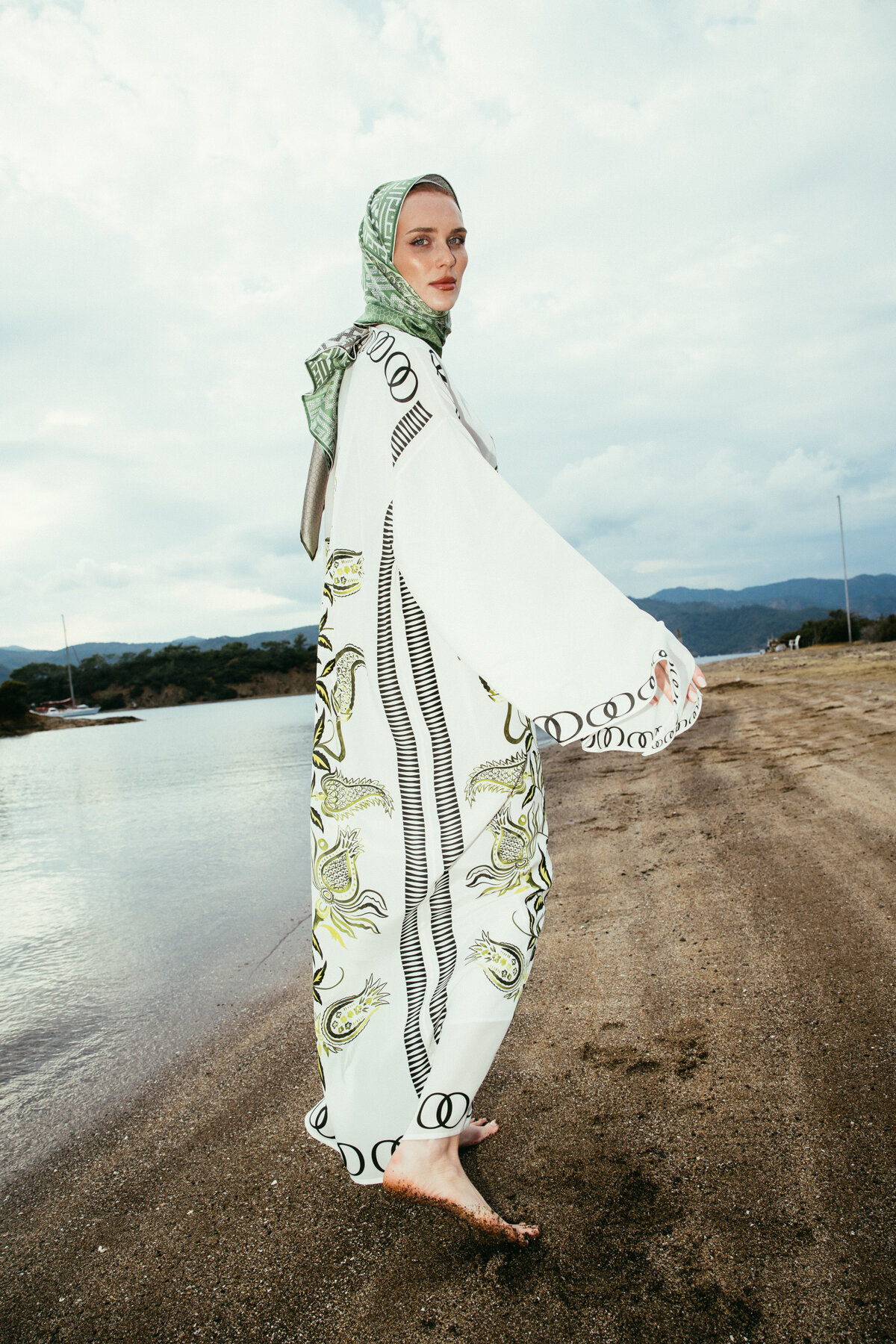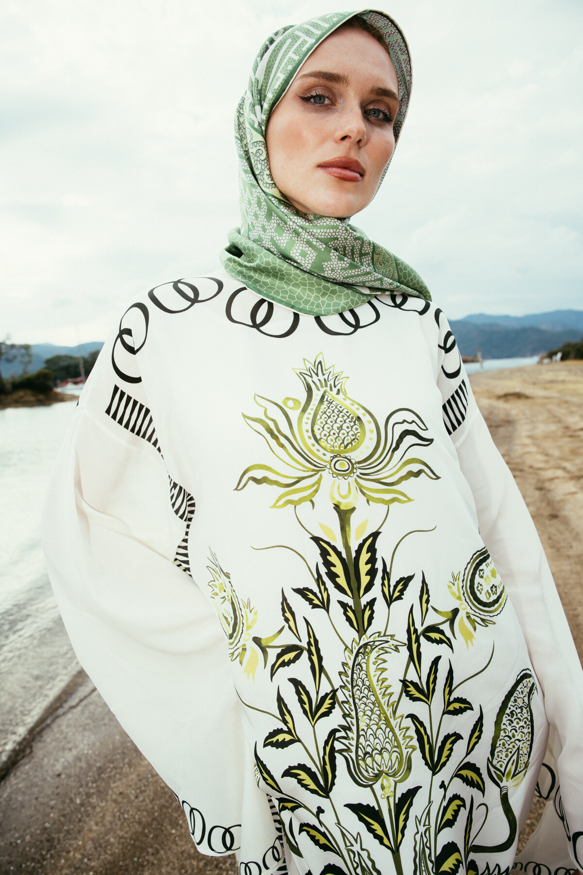 İmannoor’un zarif detaylarla bezeli tasarım çizgisini yansıtan Lale Devri İpek Elbise, %100 ipek kumaşı sayesinde akışkan, hafif ve doğal parlaklığa sahip bir duruş sunar. Adını ilham aldığı dönemin estetik anlayışından alan bu özel parça; desenleri, kesimi ve renk tonu ile hem nostaljik hem de modern bir siluet oluşturur.