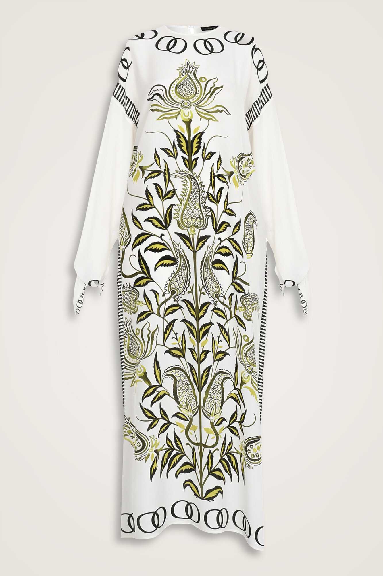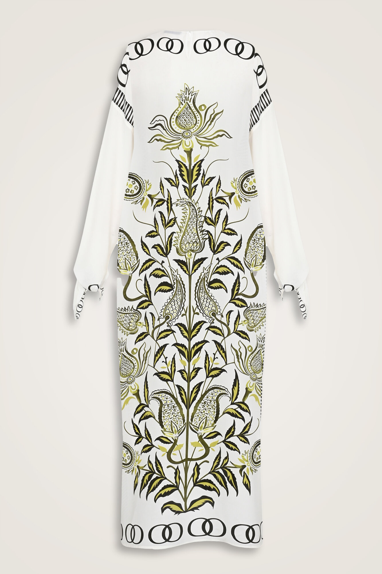Lale Devri İpek Elbise ile ipeğin lüks dokusunu ve geçmişin zarafetini modern bir yorumla üzerinizde taşıyın.