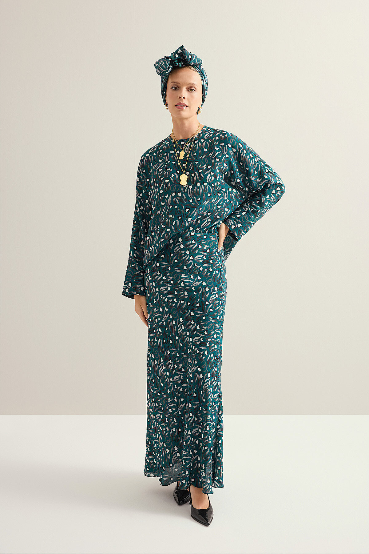 Lale Tarlası deseninin zarif ve romantik dokusunu taşıyan bu ipek etek, akıcı yapısı ve pürüzsüz dokusuyla hafif ve konforlu bir kullanım sunar. İpeğin doğal parlaklığı tasarıma sofistike bir ışıltı kazandırırken, dökümlü formu hareketle birlikte zarif bir siluet oluşturur. Hem günlük kombinlerde hem de özel anlarda kolayca uyum sağlayan bu model, zamansız ve feminen bir stilin şık bir tamamlayıcısıdır.
