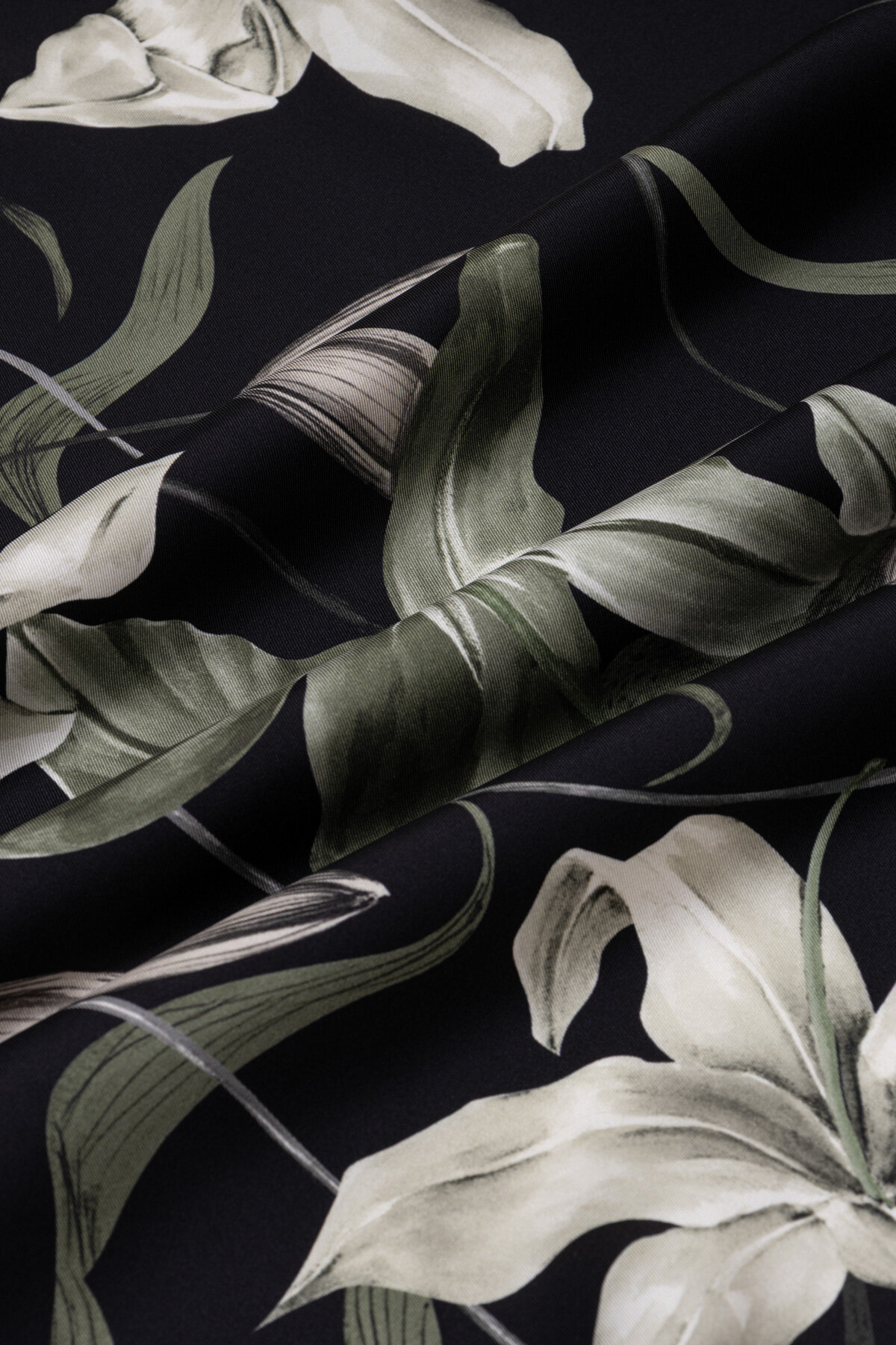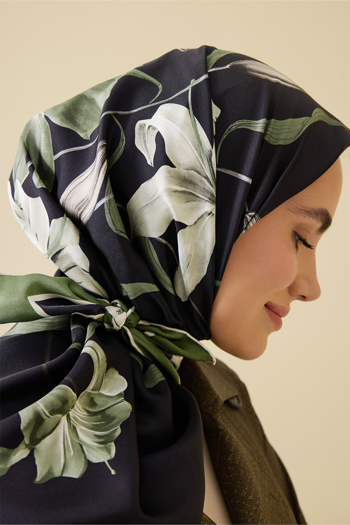 Zambak Tivil İpek Eşarp, güçlü ipek dokusunu sade şıklıkla buluşturarak gardırobunuzun öne çıkan parçalarından biri olur. ✨