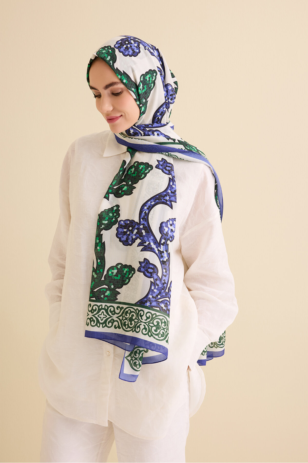 Aşk Sarmaşığı Pamuk İpek Şal ile stilinize romantik ve sofistike bir dokunuş ekleyin.