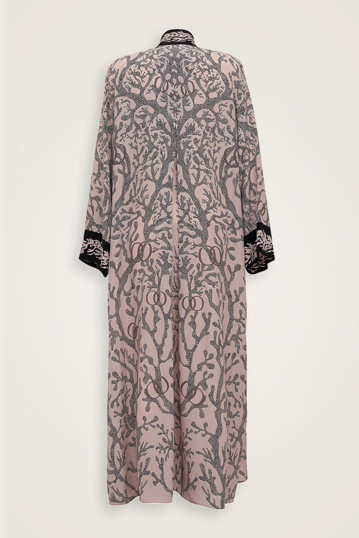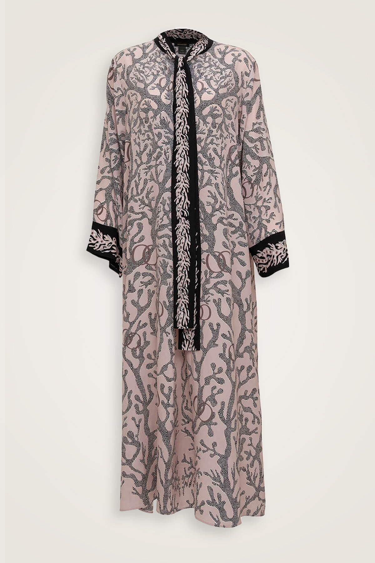 Denizaltı dünyasının estetiğini çağrıştıran mercan motifleri, elbiseye sanatsal bir zarafet katarken, doğal dokusuyla gün boyu konfor sunar. Gündüzden geceye uzanan stiller için zarif bir tamamlayıcı arayanlara özel.