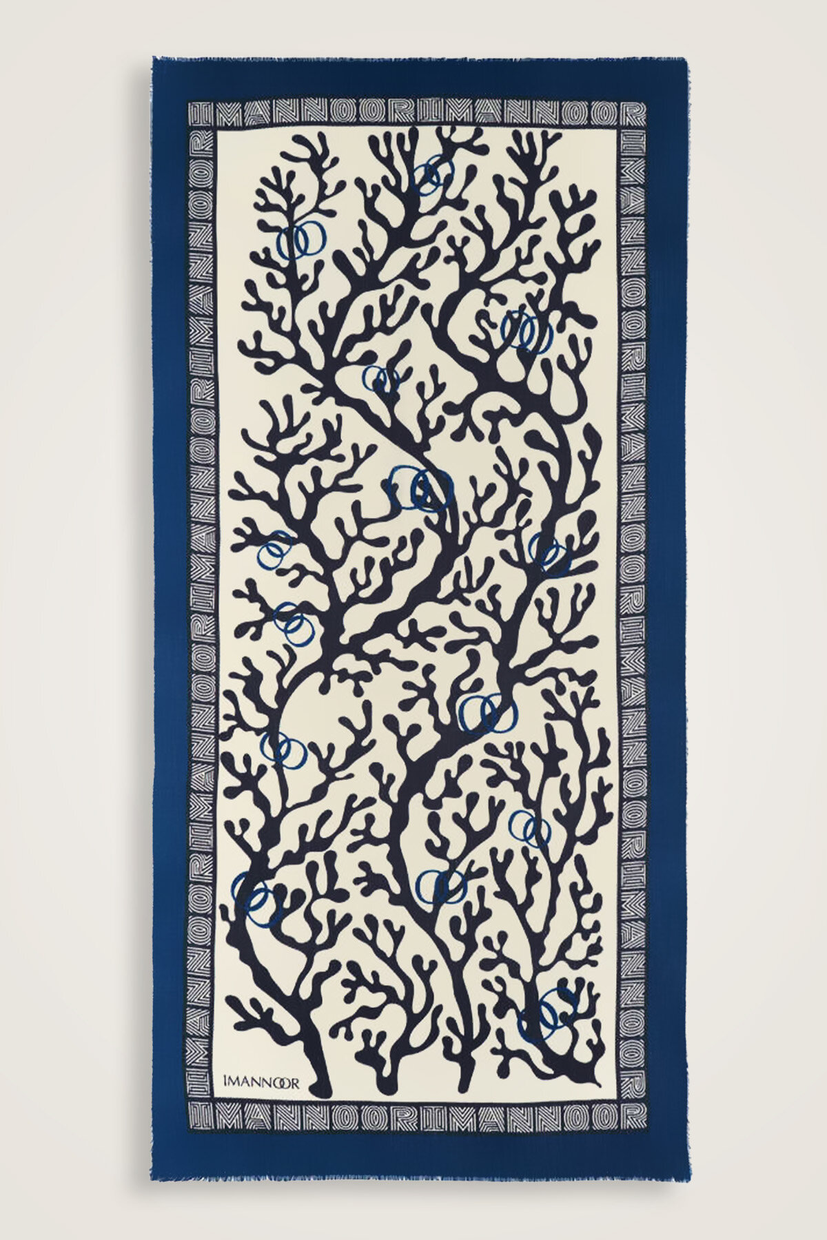 Mercan İndigo Yün İpek Şal 100x200 - 1