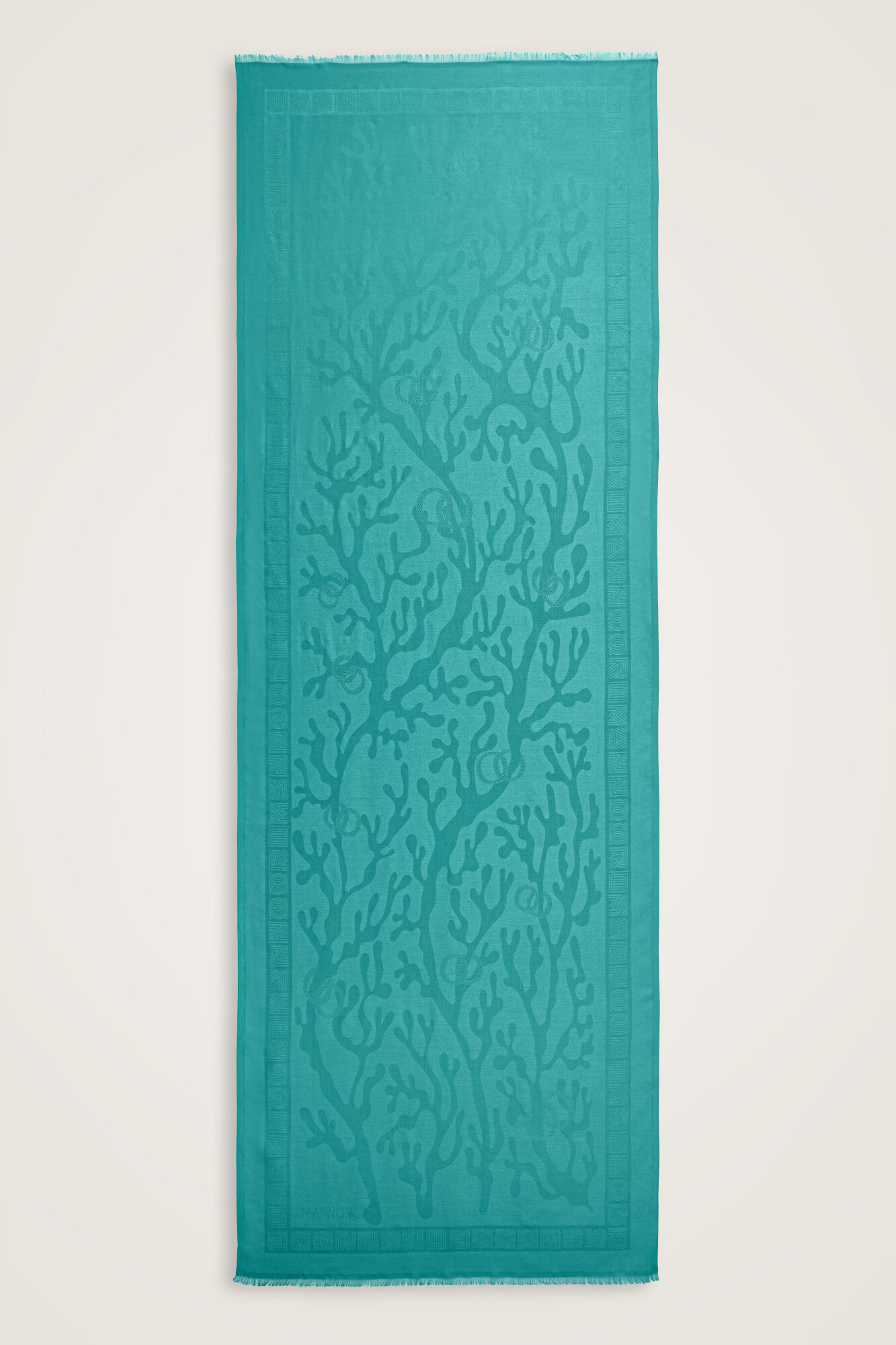 Mercan Turkuaz Jakarlı İpek Şal 70x200