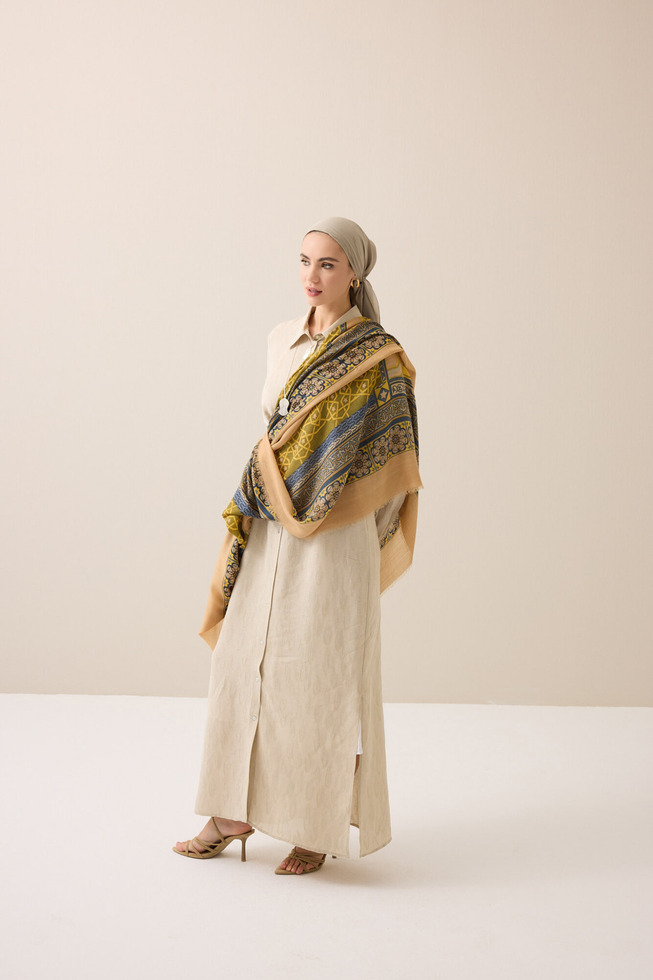 Mihrab Yün İpek Şal, stilinizi doğal bir zarafetle buluşturan seçkin bir parça.
