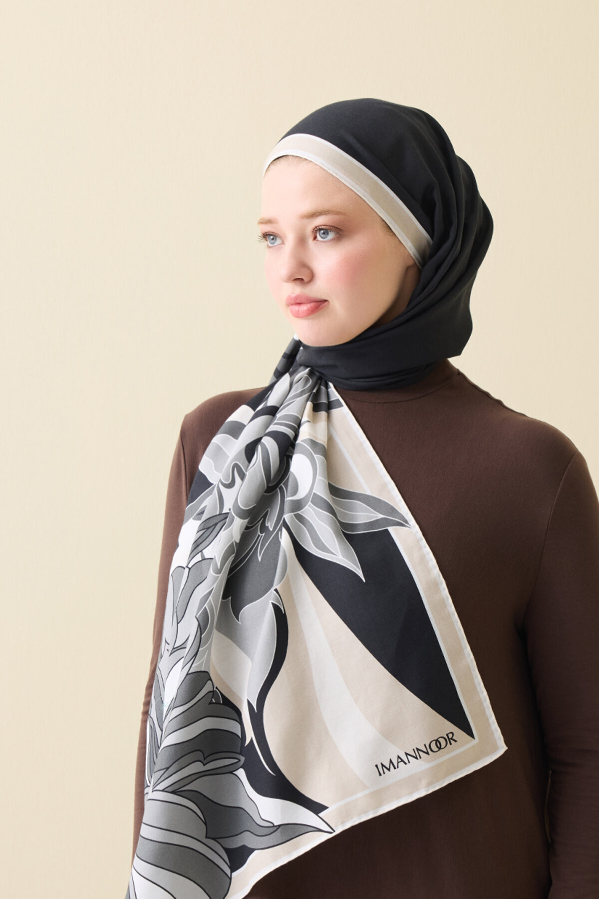 %50 ipek ve %50 pamuk karışımı kumaşı sayesinde nefes alabilen, teni rahatsız etmeyen ve gün boyu konfor sağlayan bir yapıya sahiptir. Geniş ölçüleriyle farklı bağlama şekillerine uygun, mevsim geçişlerinde ideal bir tamamlayıcıdır.