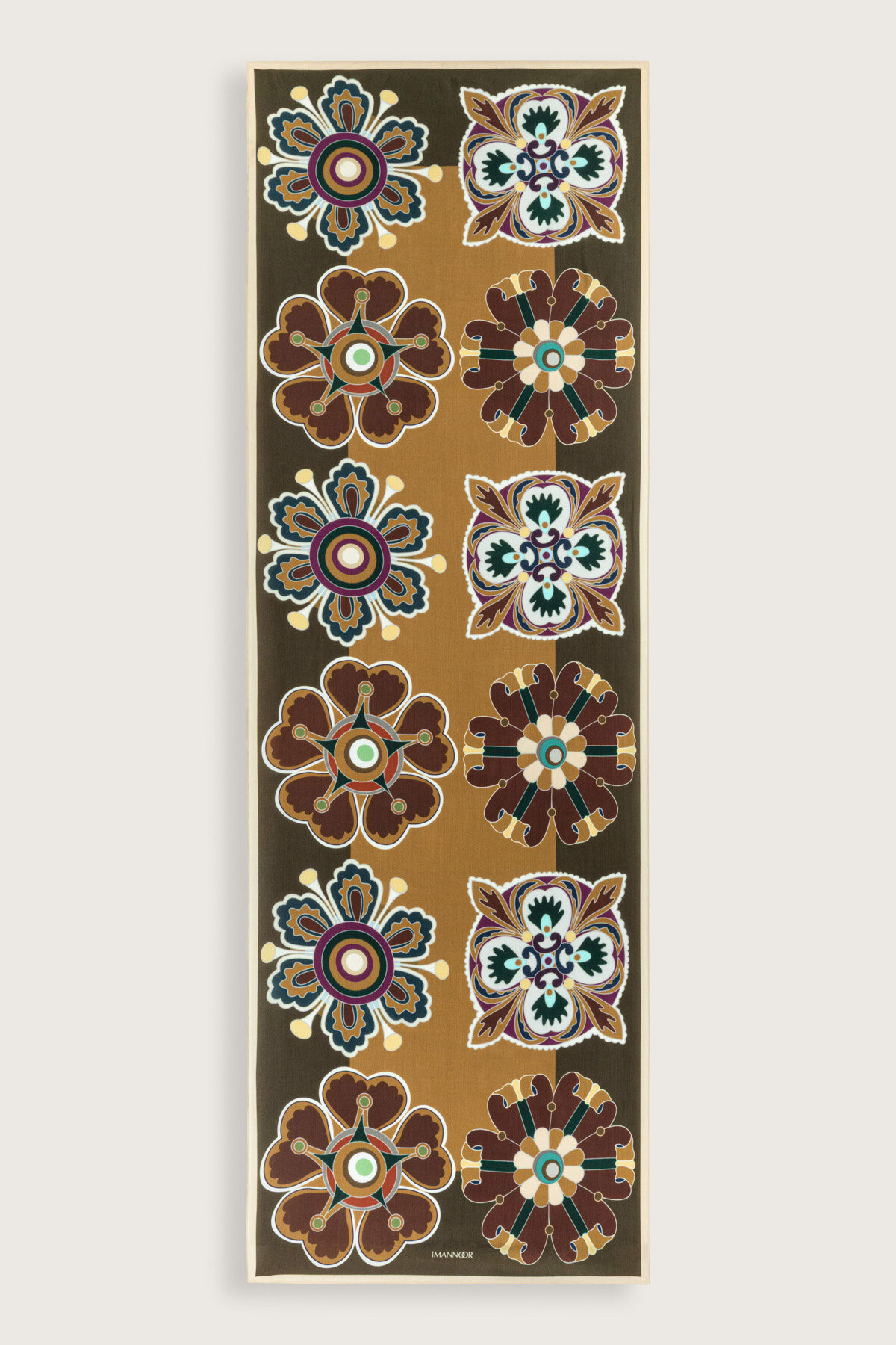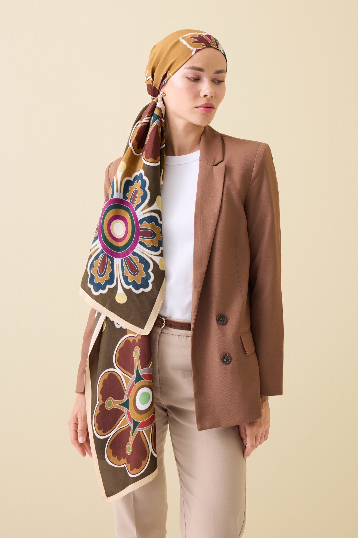 %50 floş ve %50 viskon karışımıyla hem dökümlü hem de hafif bir kullanım sunar. Geniş ölçüleri sayesinde çeşitli bağlama stillerine uygundur, çok yönlü ve zarif bir tamamlayıcıdır.