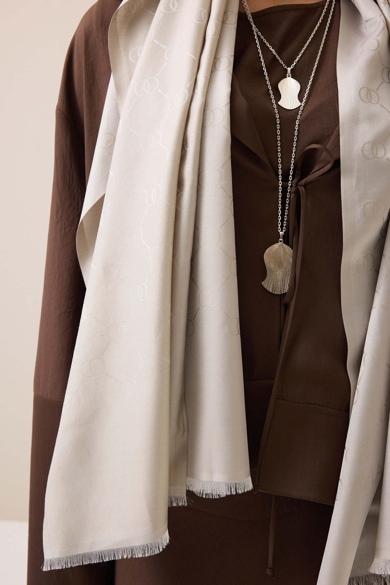 İmannoor’un zarif detaylarla tasarladığı Noor Petek Jakarlı İpek Şal, %100 jakarlı ipek kumaşıyla lüks ve konforu bir araya getiriyor. Petek desenli özel dokusu, ışığı yansıtarak şala sofistike bir görünüm kazandırırken, hafif ve akıcı yapısıyla gün boyu rahat bir kullanım sunuyor. Dökümlü duruşu sayesinde her kombine zarif bir dokunuş katan bu özel parça, hem günlük stilinizi tamamlamak hem de özel anlarda şıklığınızı ön plana çıkarmak için ideal bir seçimdir.