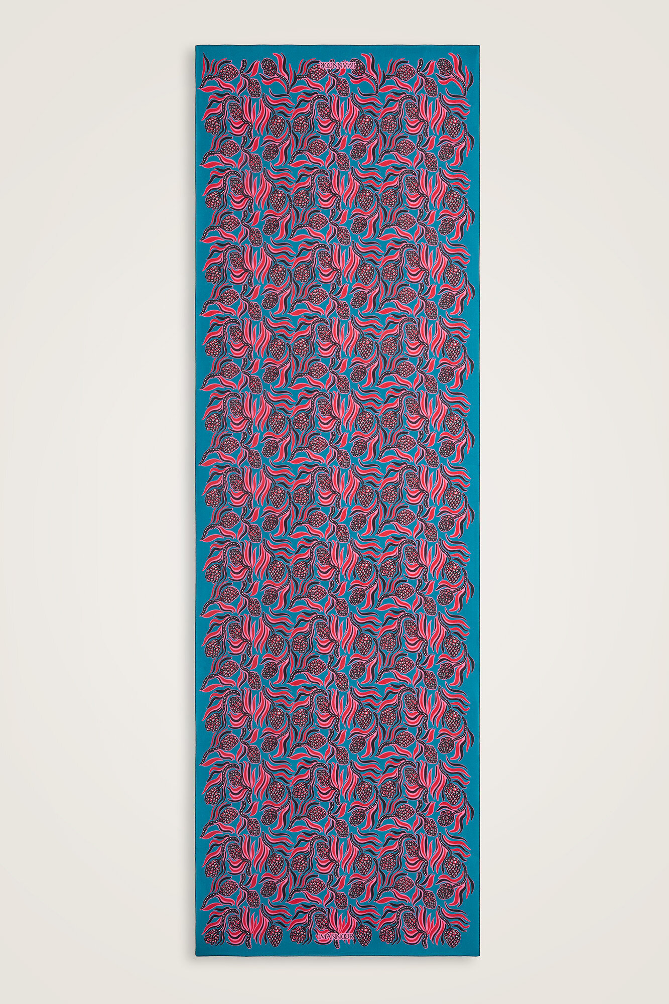 Pine Cone Blossom Red-Petrol Crepe Silk Scarf