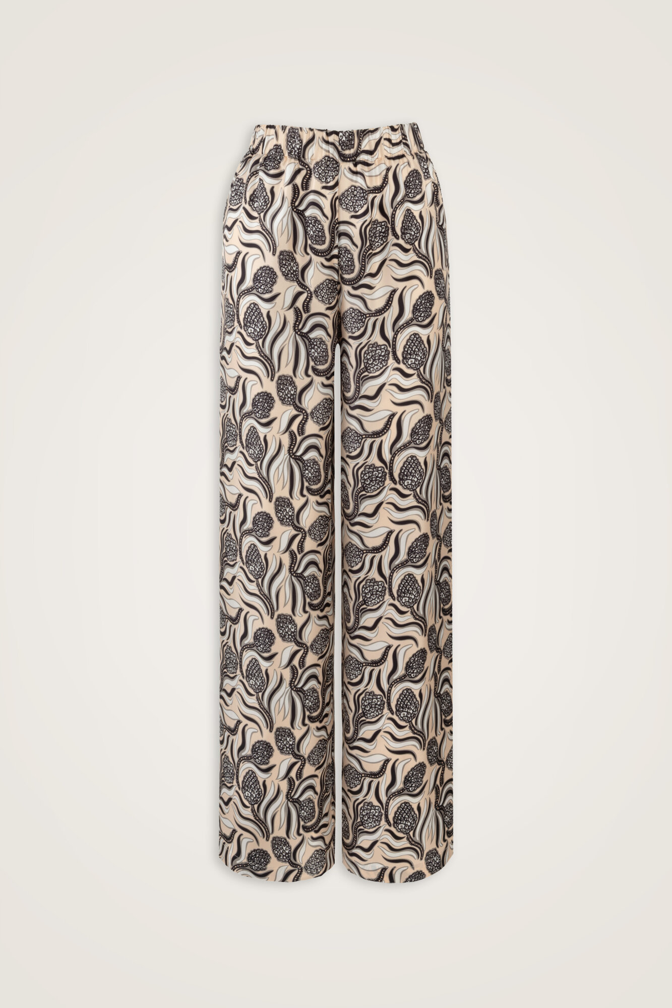 Pinecone Blossom Cream-Gray Twill Silk Trousers
