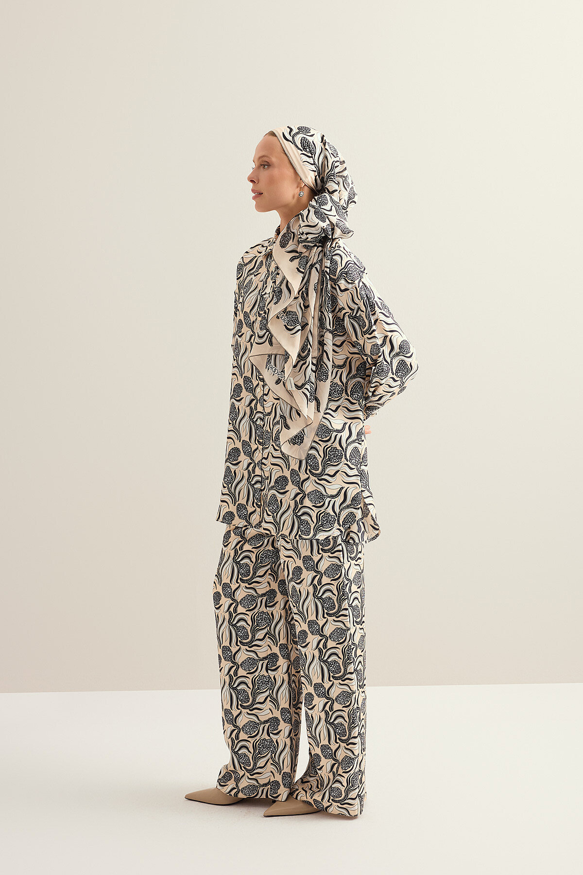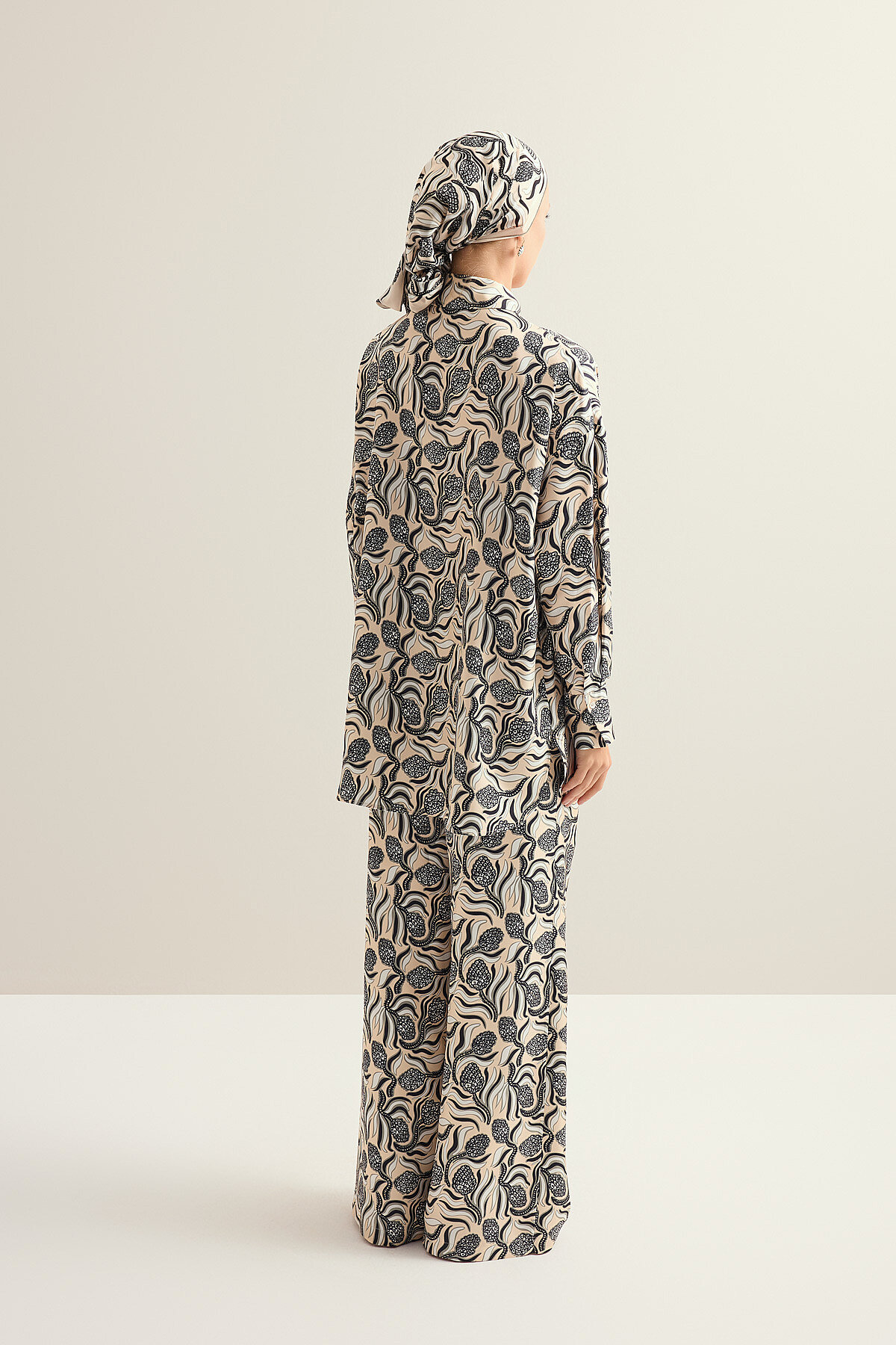 İmannoor’un doğadan ilham alan zarif tasarım anlayışını yansıtan %100 ipek Kozalak Çiçeği Tivil İpek Pantolon, tivil ipeğin tok ama akışkan dokusu sayesinde vücutta dengeli ve şık bir duruş sunar; kozalak çiçeği desenli özel tasarımıyla stile doğal bir derinlik ve sofistike bir karakter kazandırırken, ipeğin doğal parlaklığı lüks bir görünüm sağlar, hafif ve nefes alabilen yapısı gün boyu konfor sunar ve hem günlük şık kombinlerde hem de özel davetlerde zamansız ve güçlü bir parça olarak gardırobunuzda öne çıkar.