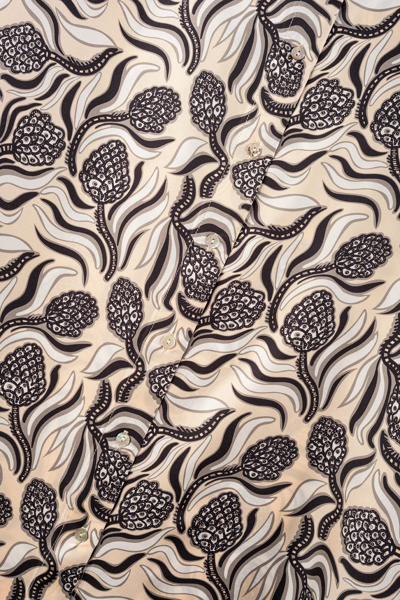 Pinecone Flower Cream-Gray Twill Silk Shirt