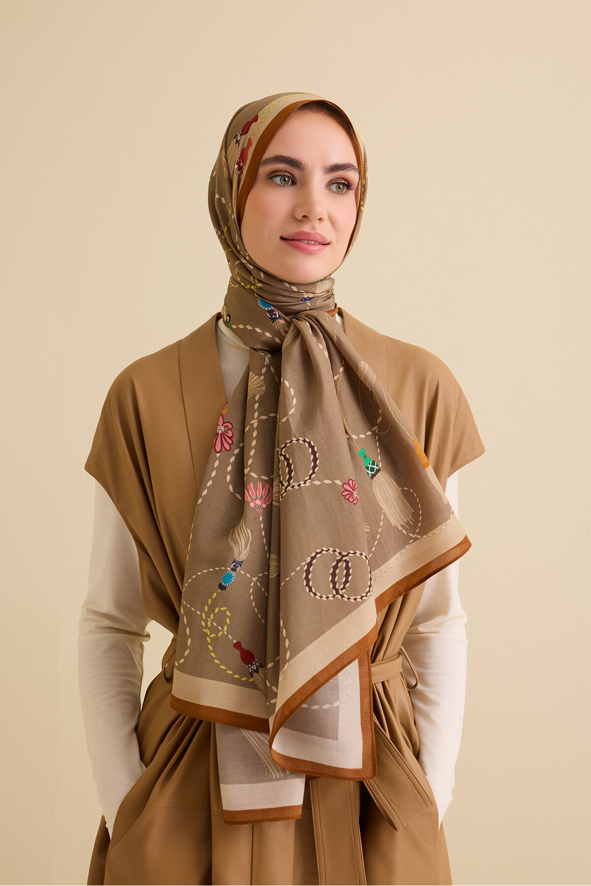 Kenarlarındaki püskül detayları, sade şıklığa hareket ve karakter katar. Günlük kombinlerden özel davetlere kadar geniş bir kullanım alanına sahiptir.