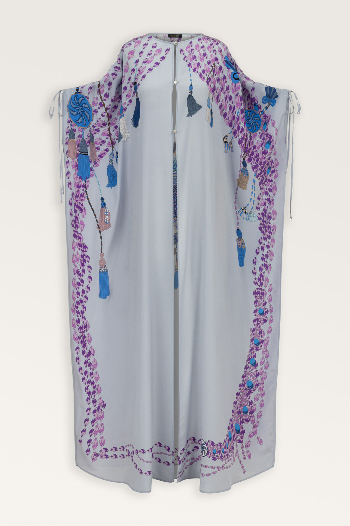 Zamansız şıklığı zarif detaylarla buluşturan Püskül Noor İpek Abaya, sade çizgileri ve akıcı formuyla modern bir duruş sergiliyor. %100 krep ipek kumaşıyla lüks dokunuşu hissettirirken, püskül detayları tasarıma sofistike bir hareket kazandırıyor.