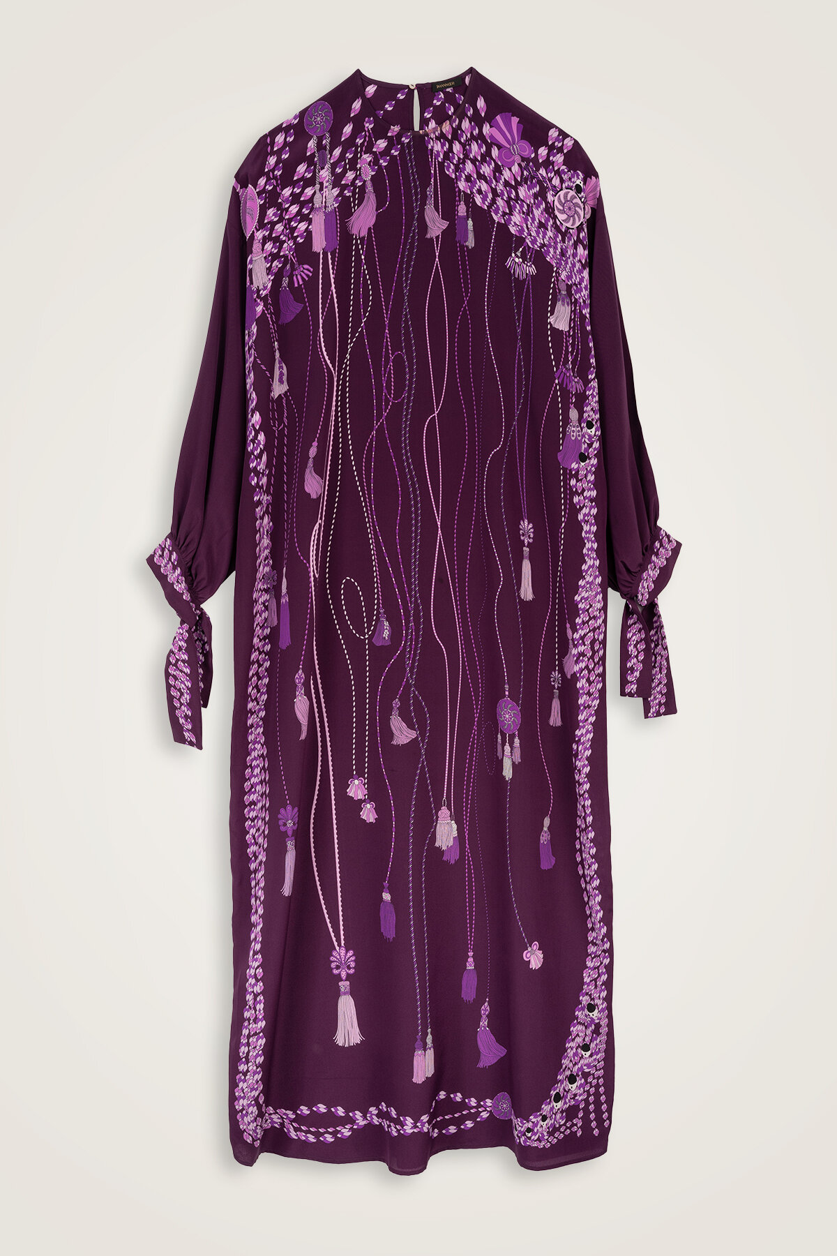 Doğal ipek kumaşı sayesinde cilde dost, nefes alabilen ve her mevsim konforla kullanılabilen bu elbise, gündüzden geceye uzanan davetlerde ya da özel buluşmalarda sofistike bir stil oluşturur.