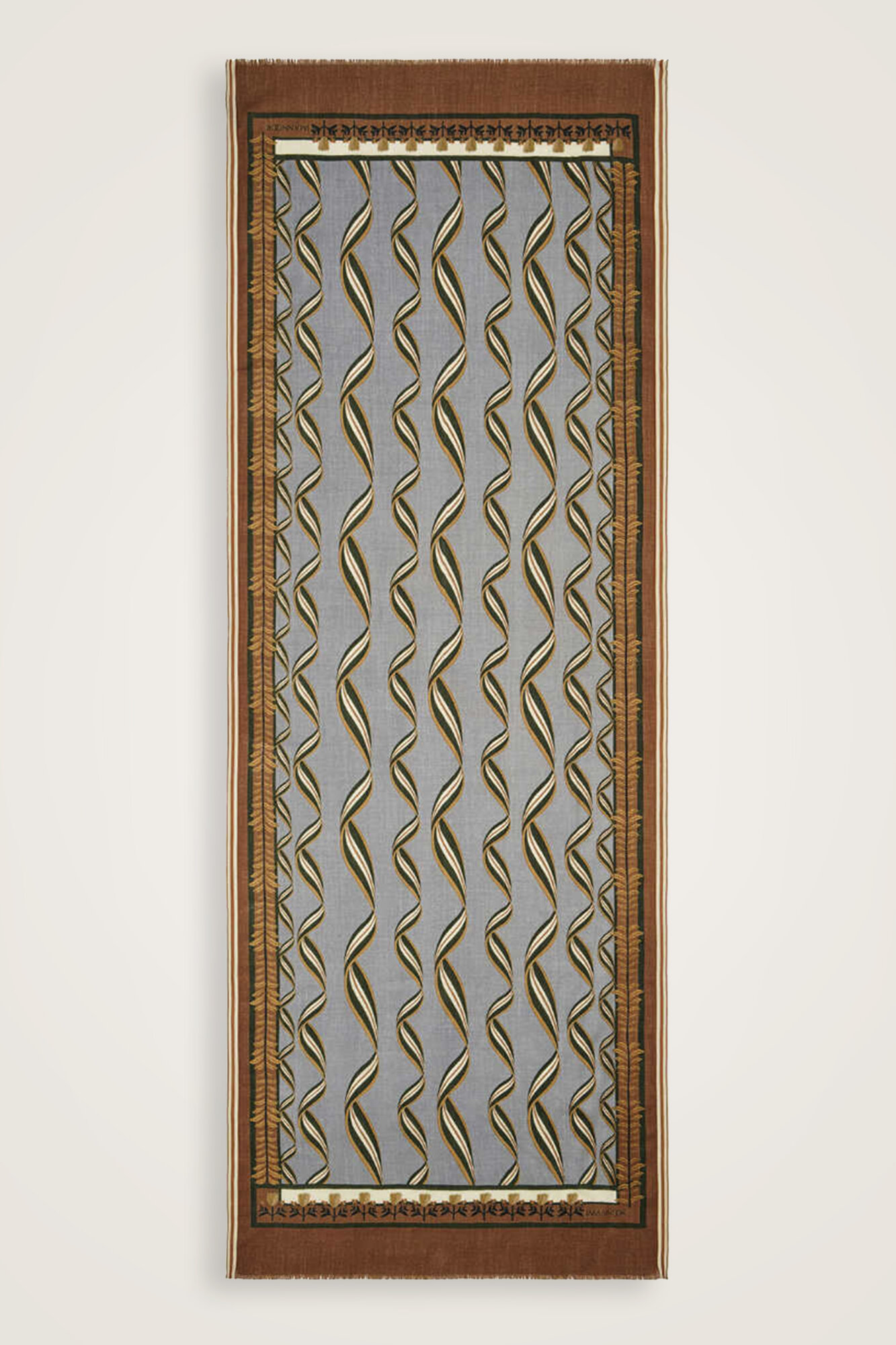 Bordür Leopar Açık Gri Yün İpek Şal 100x200
