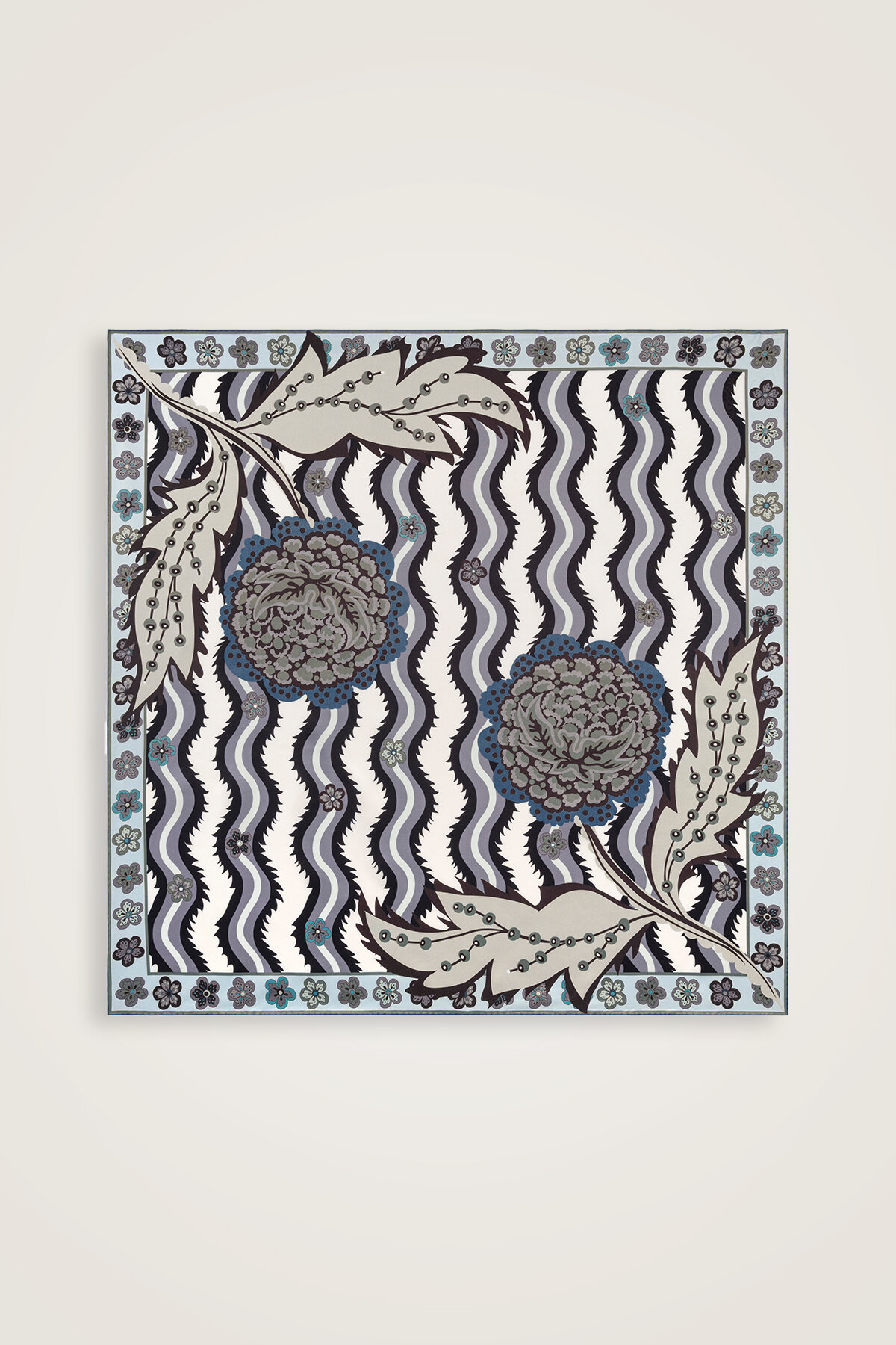 River Rose Blue-Gray Double-Sided Twill Silk Scarf