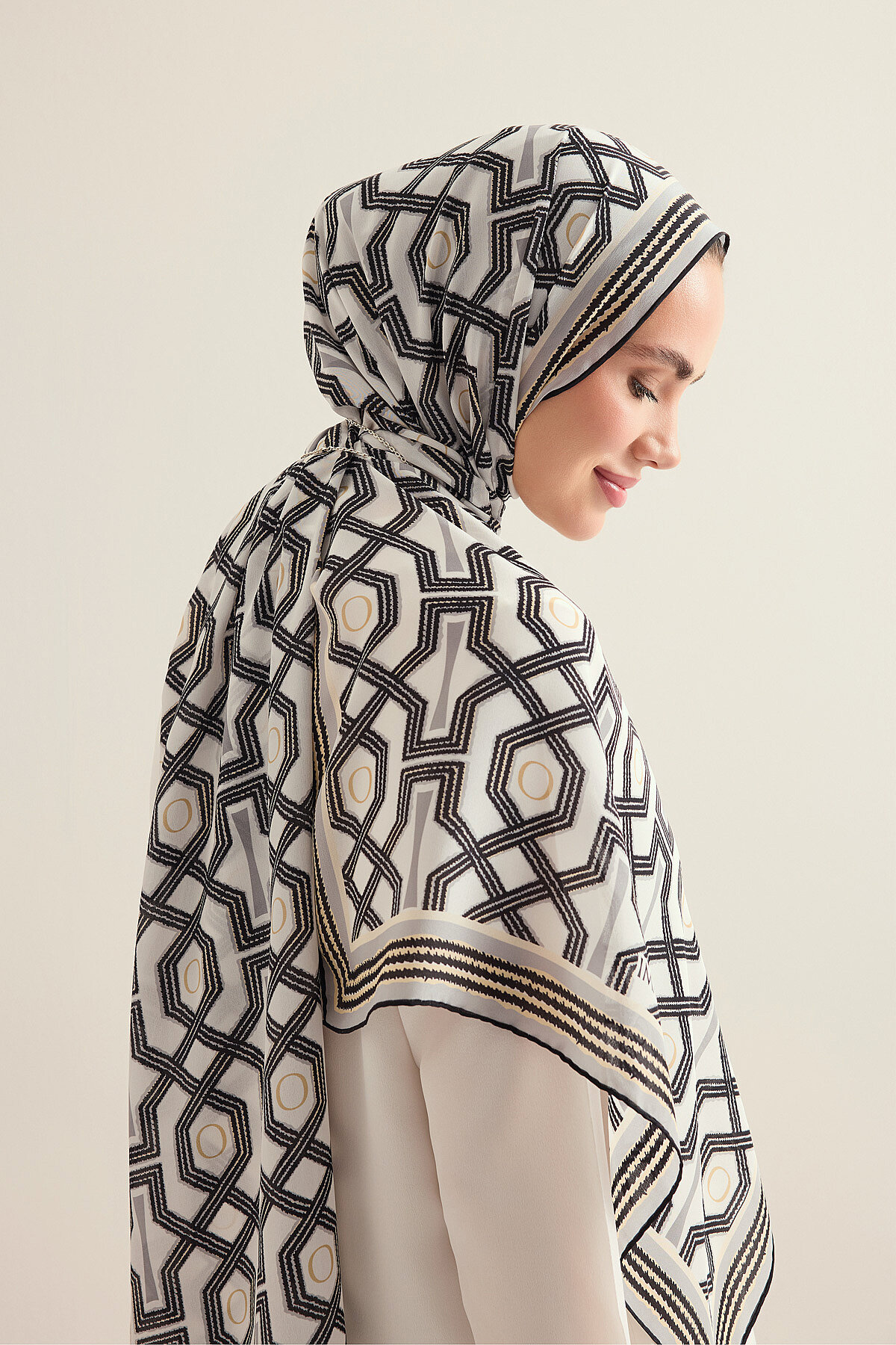 Selçuk-i Kafes Black and White Chiffon Silk Scarf 70x210