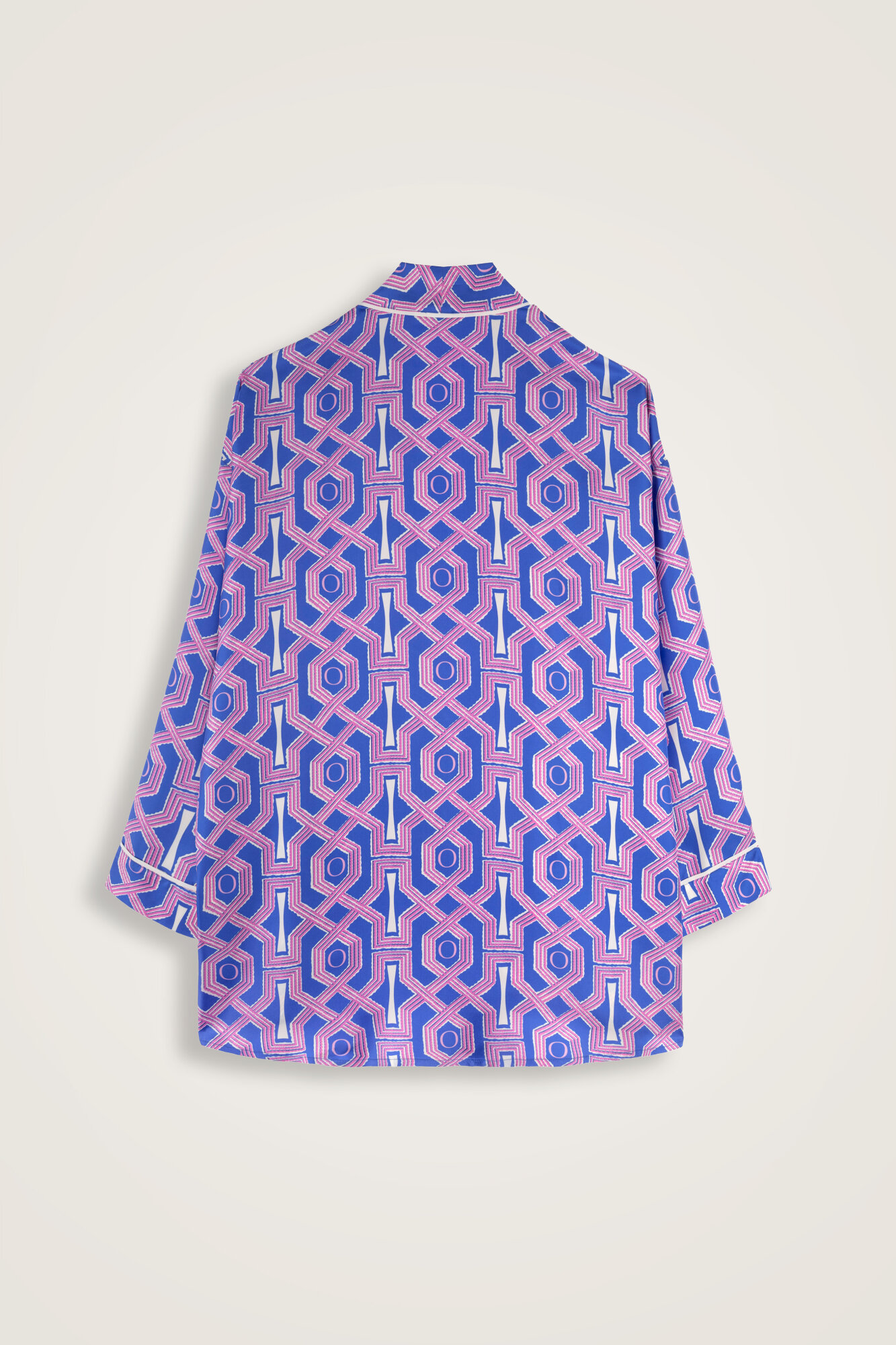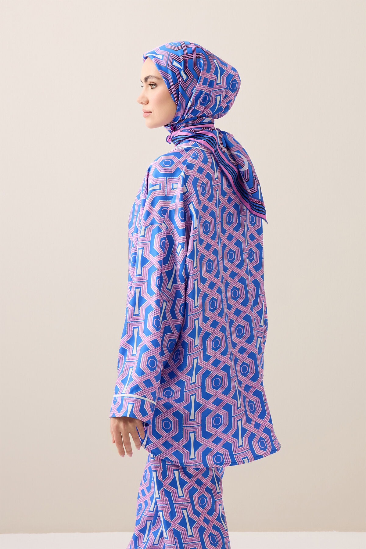 Selçuk-i Kafes Fuşya-Saks Tivil İpek Kısa Kimono