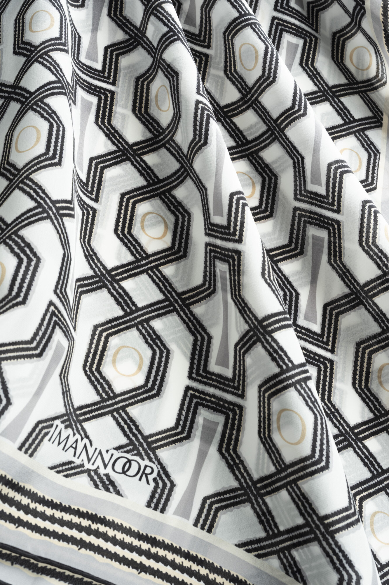 Selçuk-i Kafes Siyah-Beyaz Şifon İpek Şal 70x210