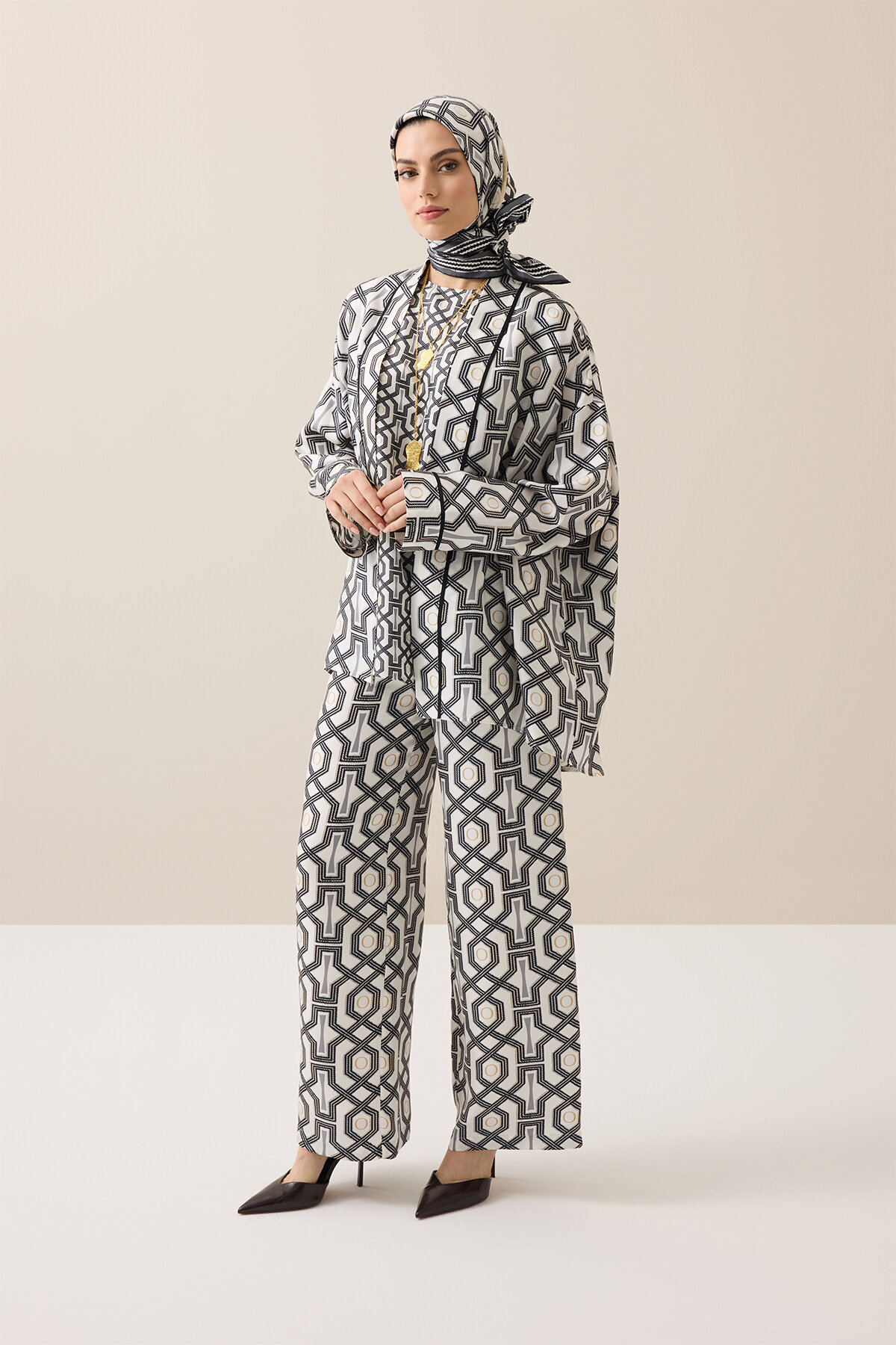 İmannoor’un zamansız estetik anlayışını yansıtan %100 ipek Selçuk-İ Kafes Tivil Pantolon, tivil ipeğin tok ve akışkan dokusu sayesinde vücutta dengeli ve zarif bir duruş sunar; Selçuklu esintilerinden ilham alan kafes desenli özel tasarımıyla stilinize karakter ve kültürel bir derinlik kazandırırken, ipeğin doğal parlaklığı sofistike bir görünüm sağlar, hafif ve nefes alabilen yapısı gün boyu konfor sunar ve hem modern hem klasik kombinlerde güçlü bir tamamlayıcı parça olarak öne çıkar.