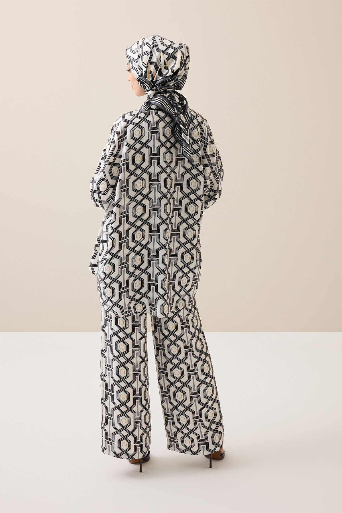 Selçuk-i Kafes Siyah-Beyaz Tivil İpek Pantolon
