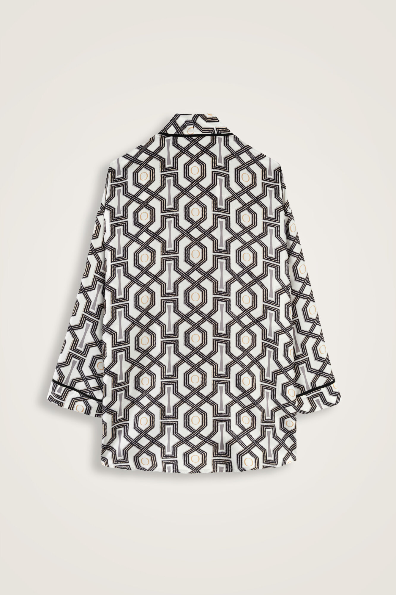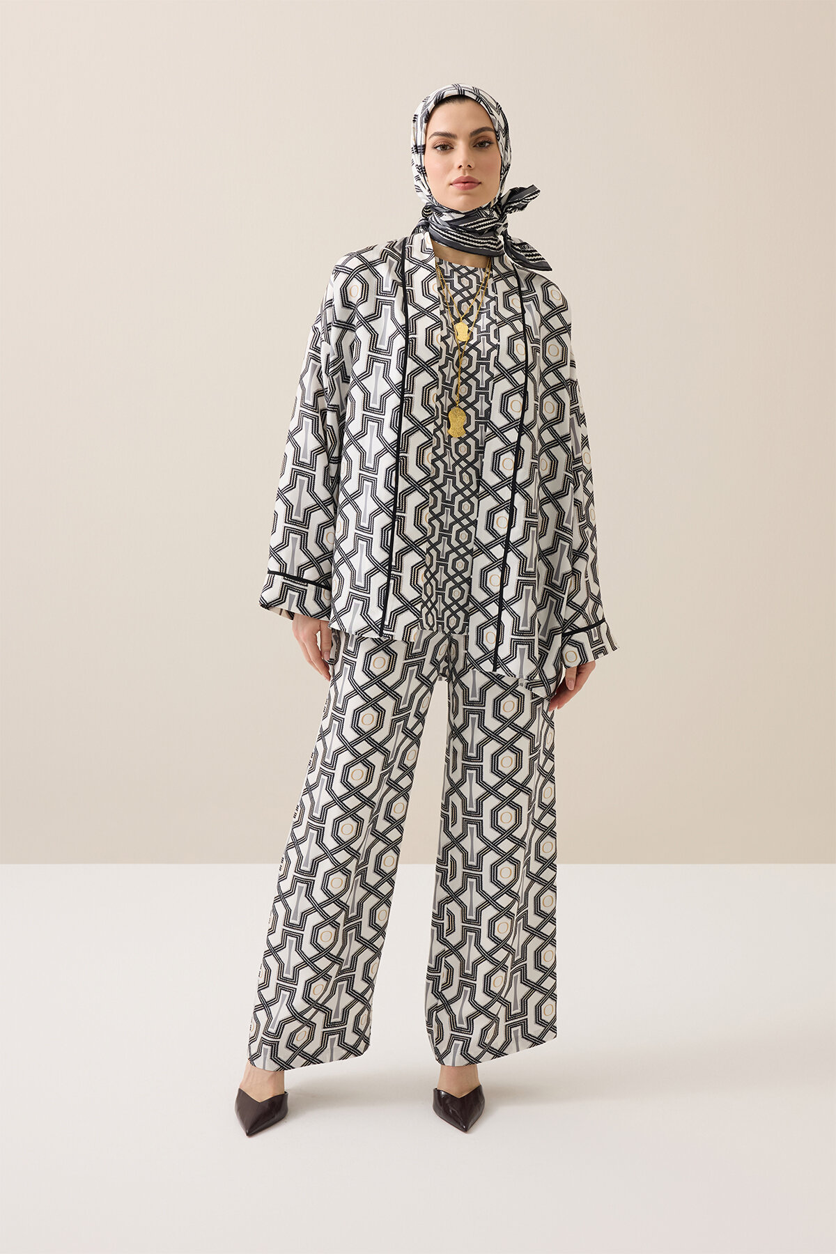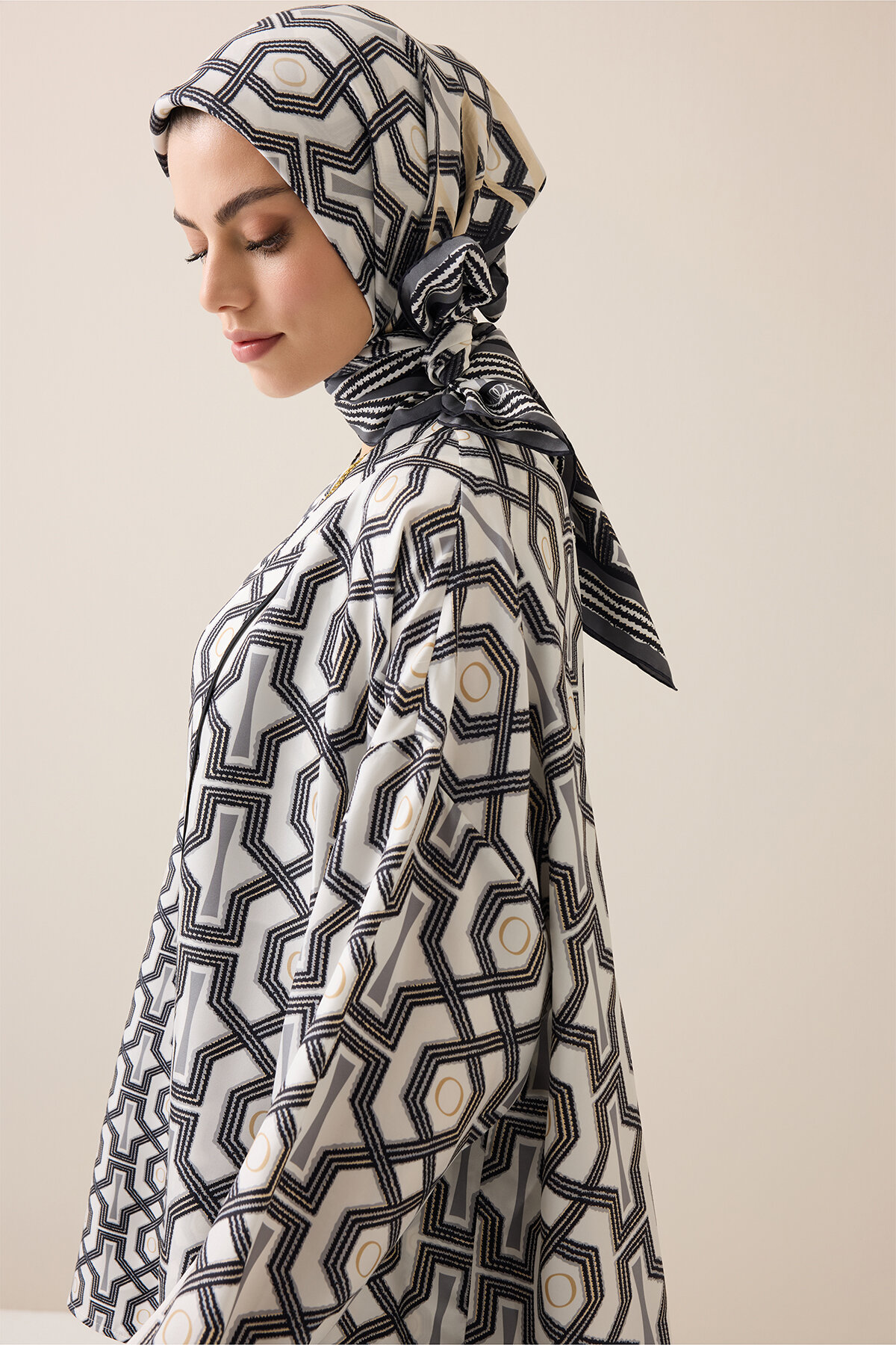 Seljuk-i Cage Black and White Twill Silk Short Kimono
