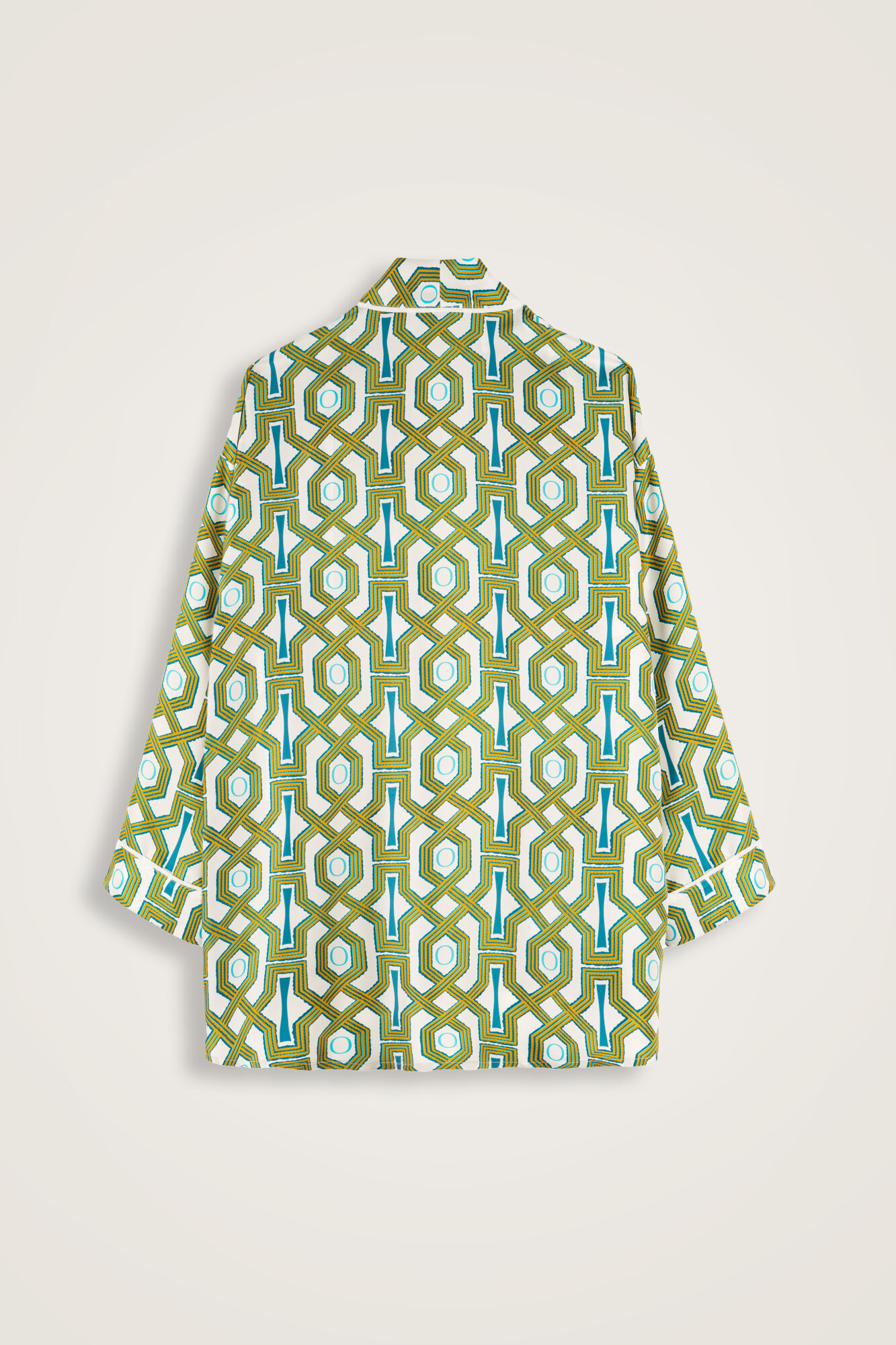 Seljuk-i Kafes Turquoise-Yellow Twill Silk Short Kimono