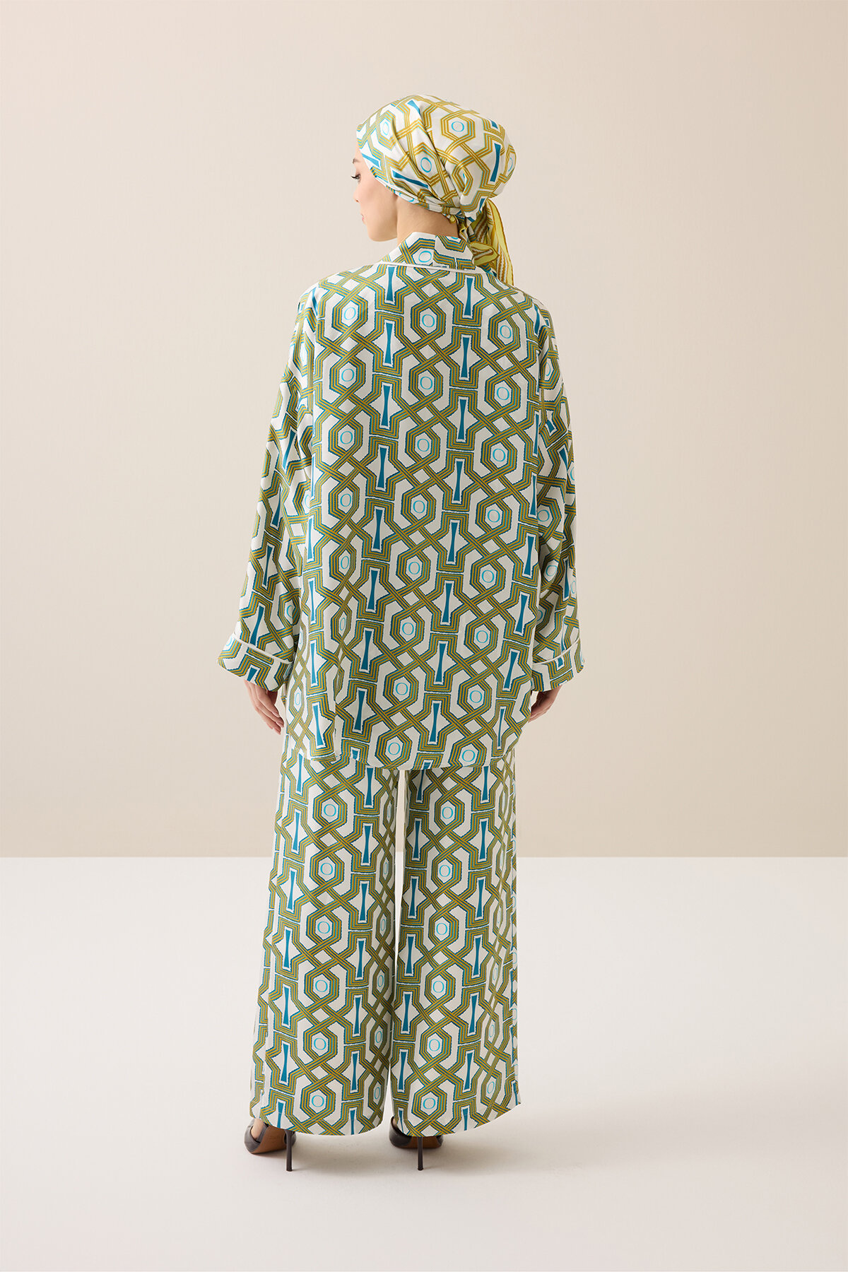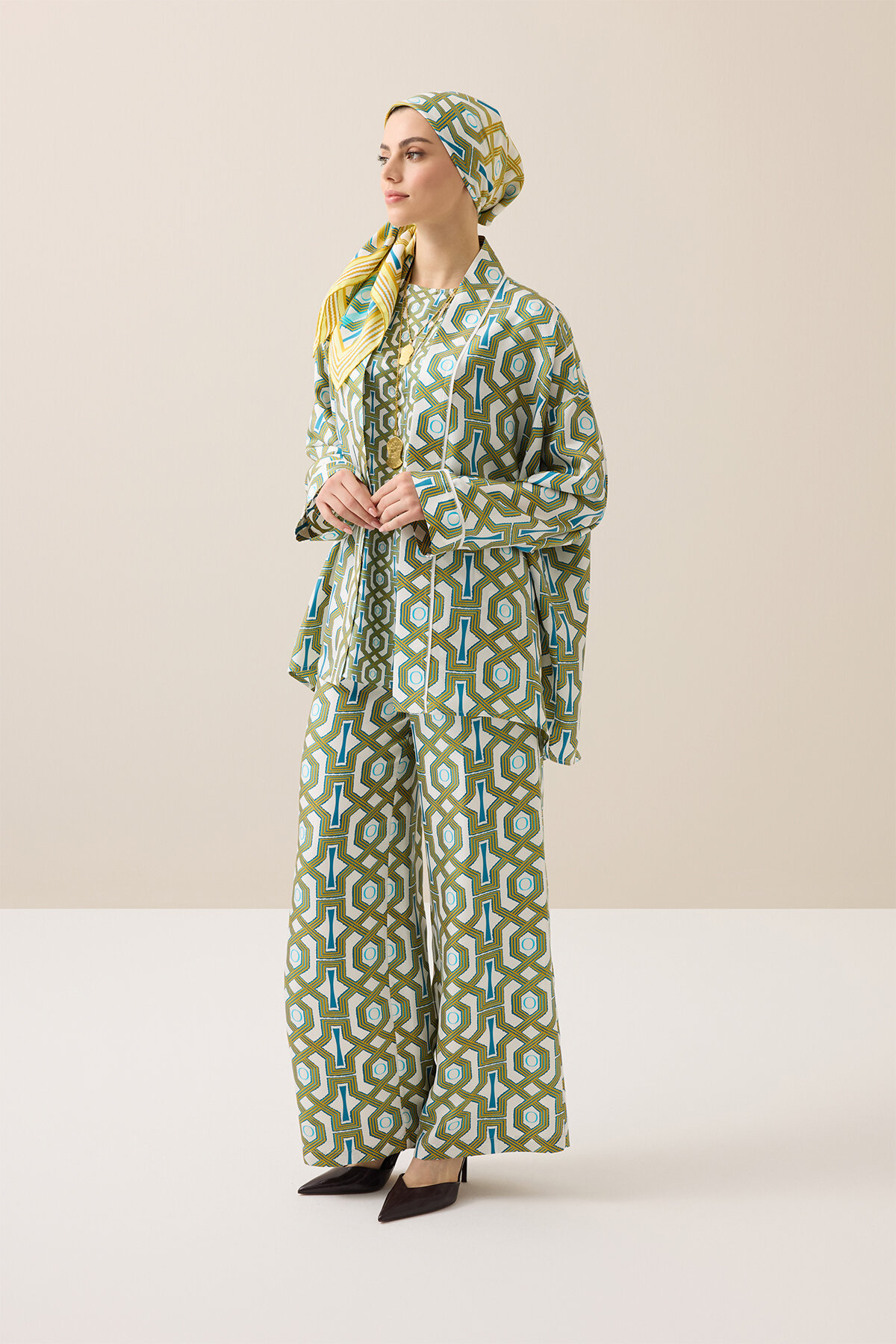 Seljuk-i Kafes Turquoise-Yellow Twill Silk Trousers