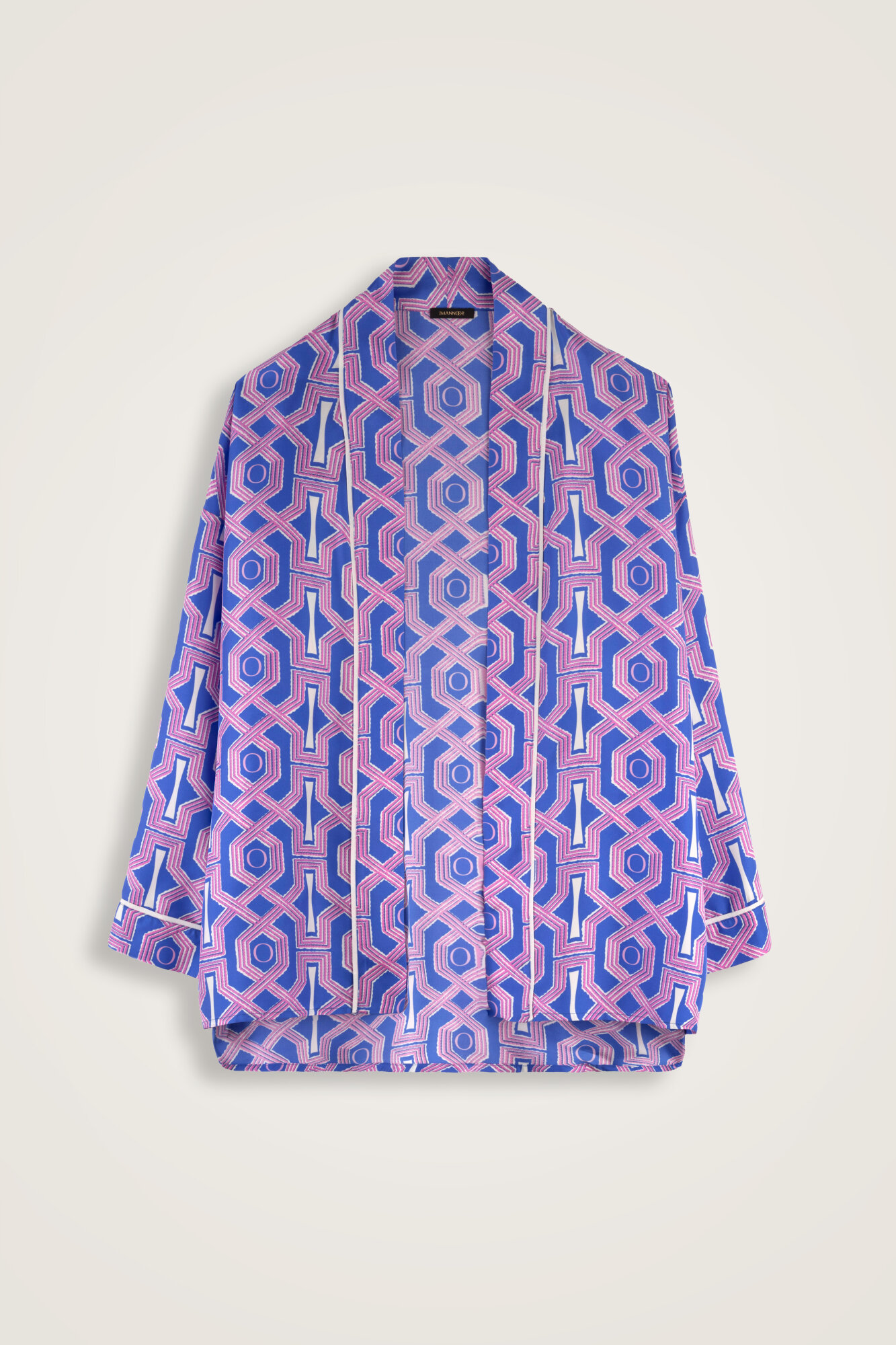 Seljuk-style Cage Fuchsia-Saks Twill Silk Short Kimono