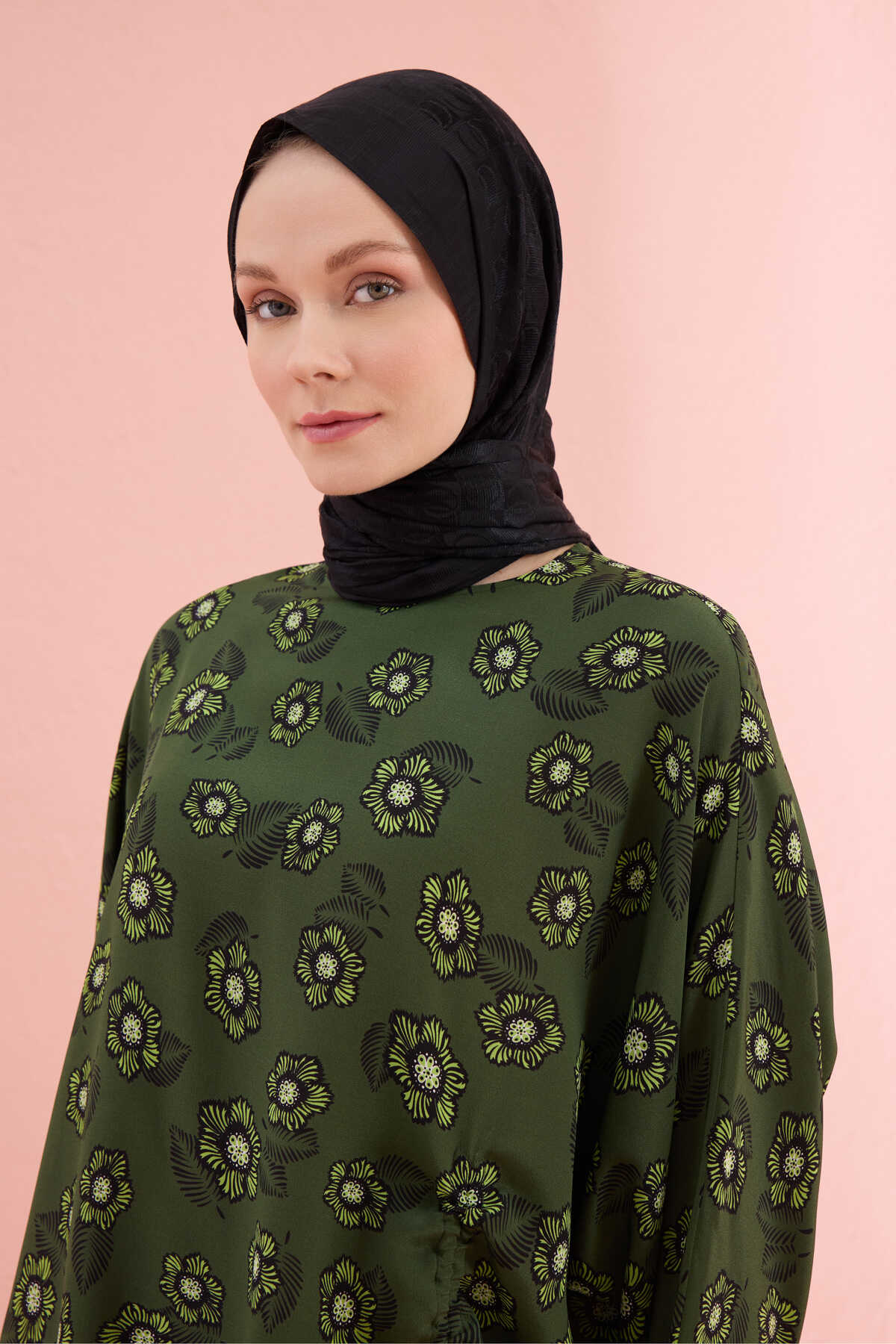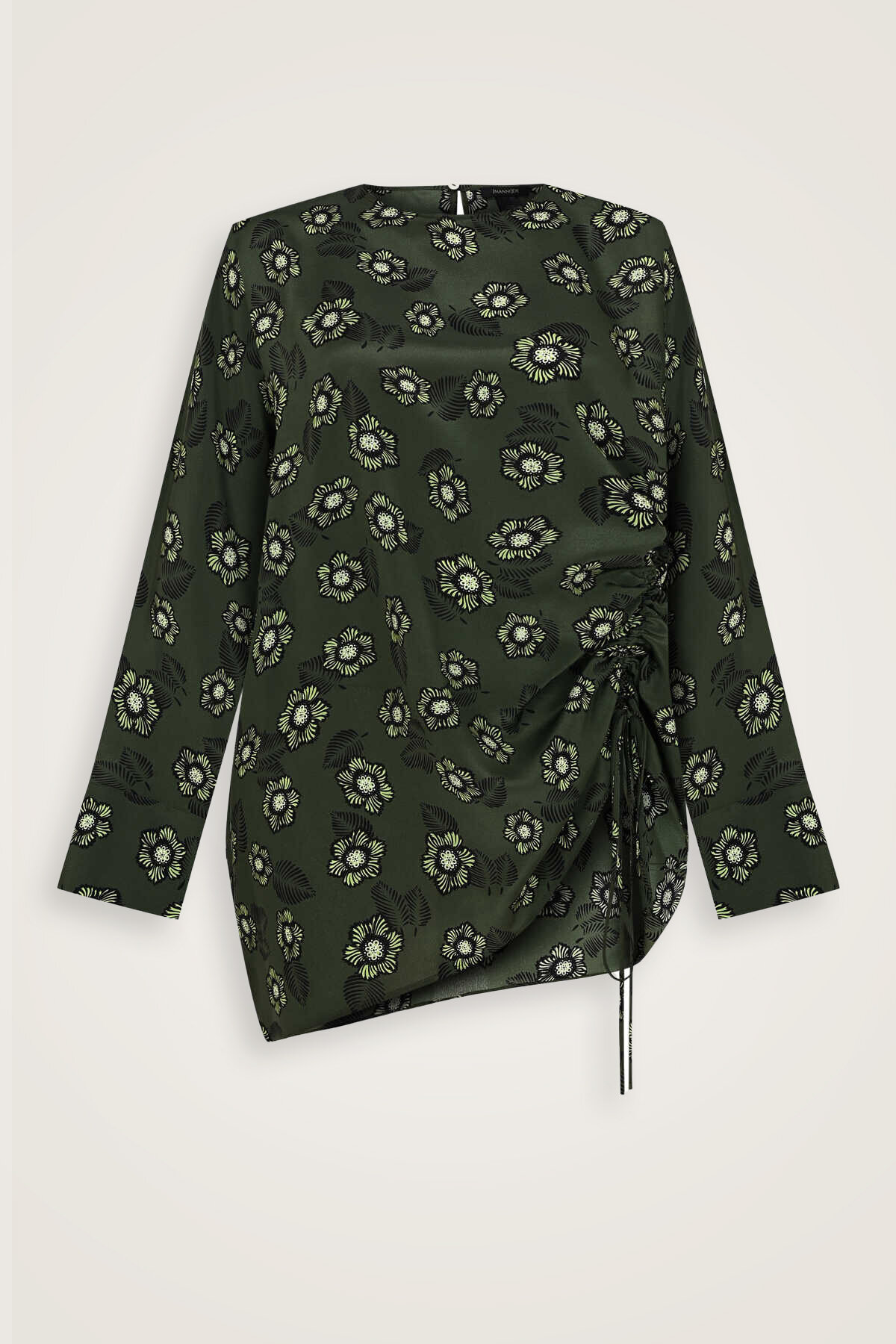 Serpme Çiçek Büzgülü İpek Bluz ile ipeğin zarafetini, doğadan ilham alan desenlerle buluşturun.