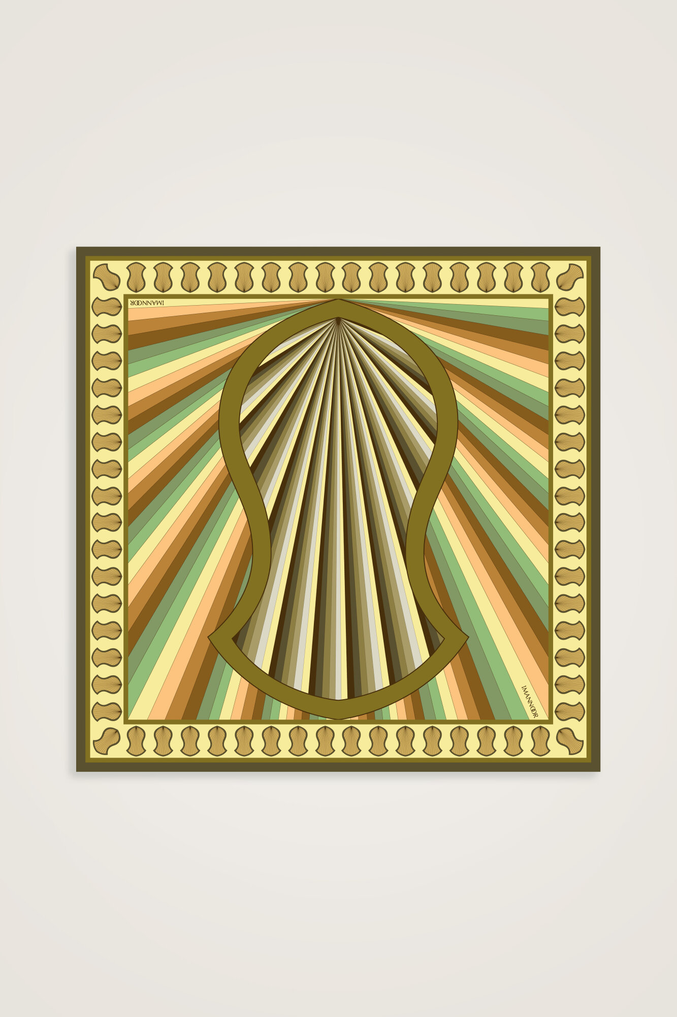 Dalgaların İçinde Haki-Yağ Yeşili Çift Taraflı Tivil İpek Eşarp 94x94