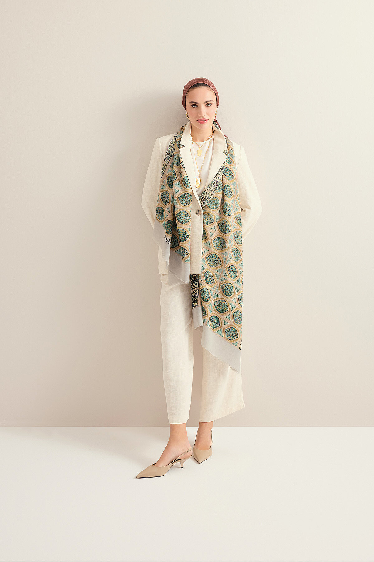 Notify me when its in stockİmannoor’un geleneksel motifleri zamansız bir yorumla buluşturan tasarım anlayışını yansıtan %100 yün Şemse ve Mihrap Yün Şal, doğal yünün sıcak tutan ama nefes alabilen yapısıyla konforlu ve yumuşak bir kullanım sunar; 70×200 cm ölçüsü farklı bağlama ve sarma stillerine uyum sağlarken, şemse ve mihrap motiflerinden ilham alan özel deseniyle stile kültürel derinlik ve zarif bir karakter kazandırır, doğal dokusu ve tok duruşuyla hem günlük kombinlerde hem de özel stillerde sıcaklık ve şıklığı bir arada sunan zamansız bir aksesuar olarak öne çıkar.