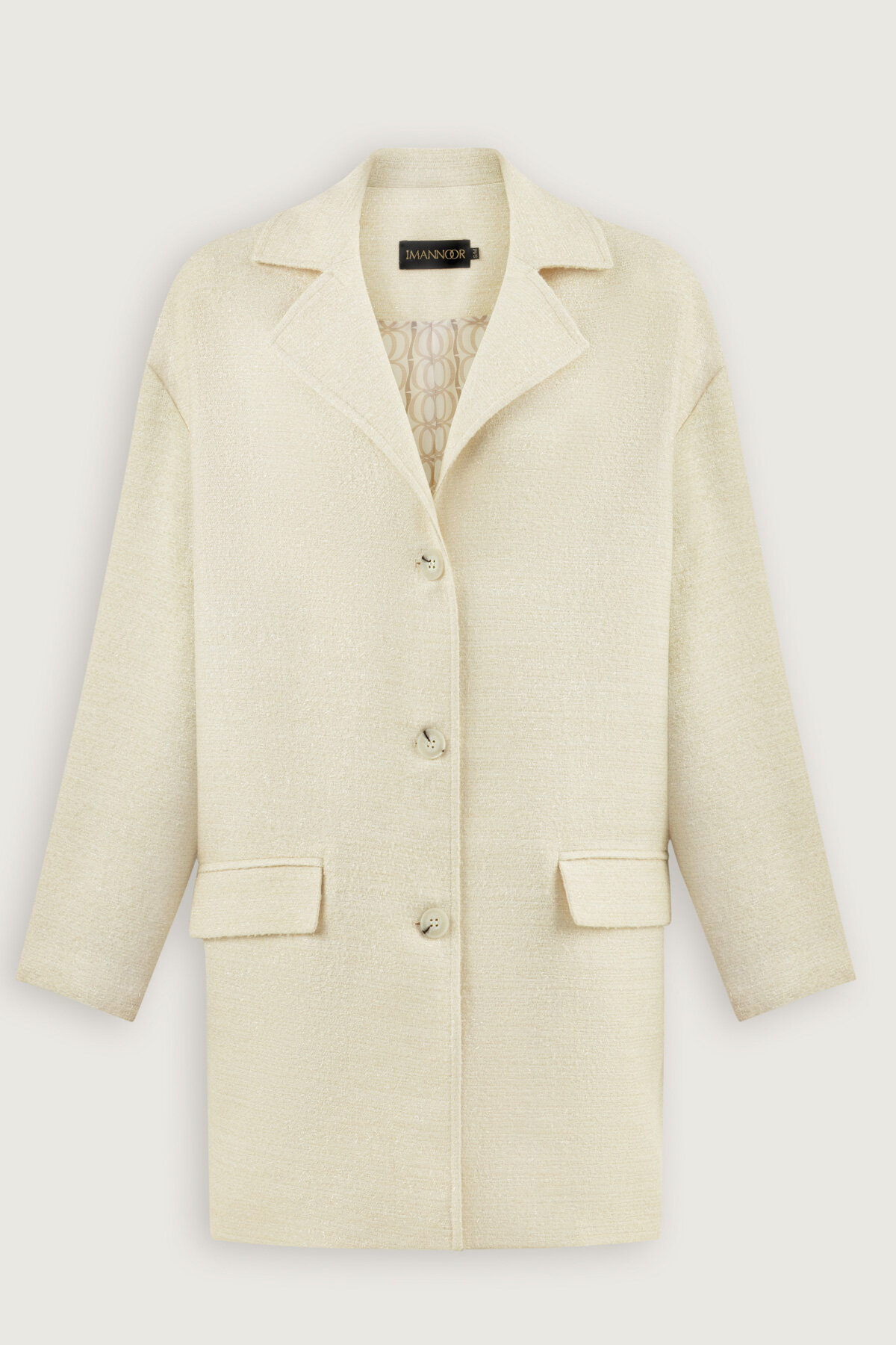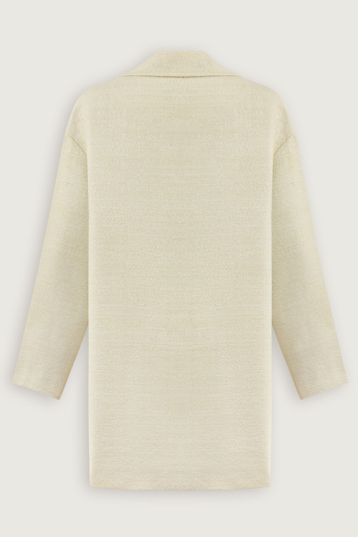 Simli Uzun Ceket, klasik çizgilere modern bir ışıltı katarak stilinizi öne çıkarır.