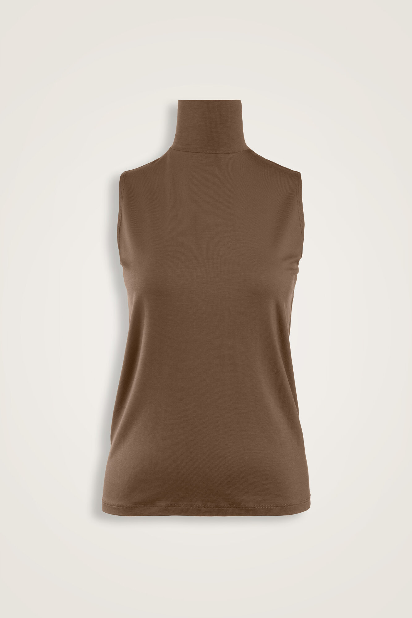 Solid Color Cappuccino Long Supreme Sleeveless Blouse