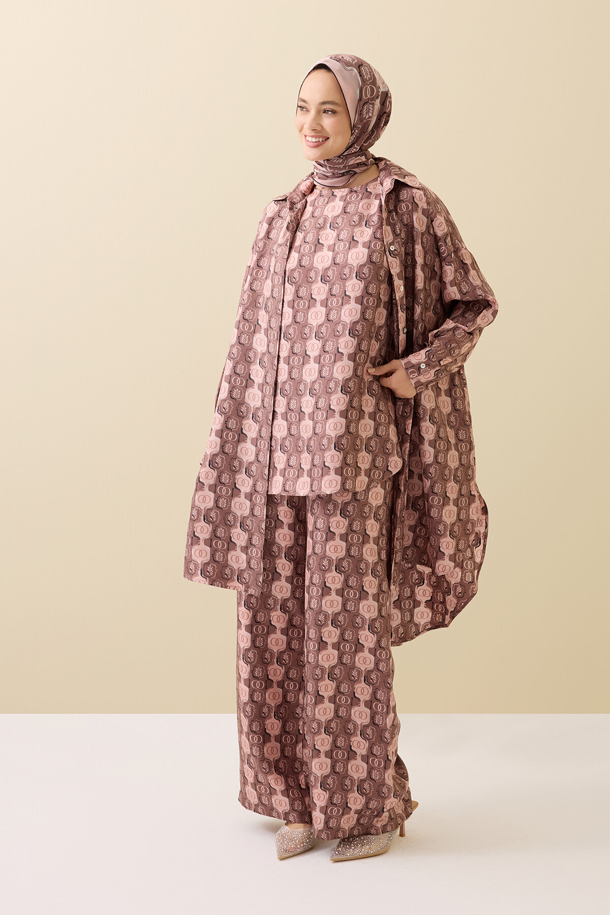 Zarafeti sade çizgilerle buluşturan İmannoor Girdap İpek Atlet, ipeğin doğal ışıltısı ve akışkan dokusuyla sofistike bir görünüm sunar. “Girdap” deseninin ritmik hareketi, tasarıma zarif bir dinamizm kazandırırken, uzun formu modern ve rahat bir siluet oluşturur.